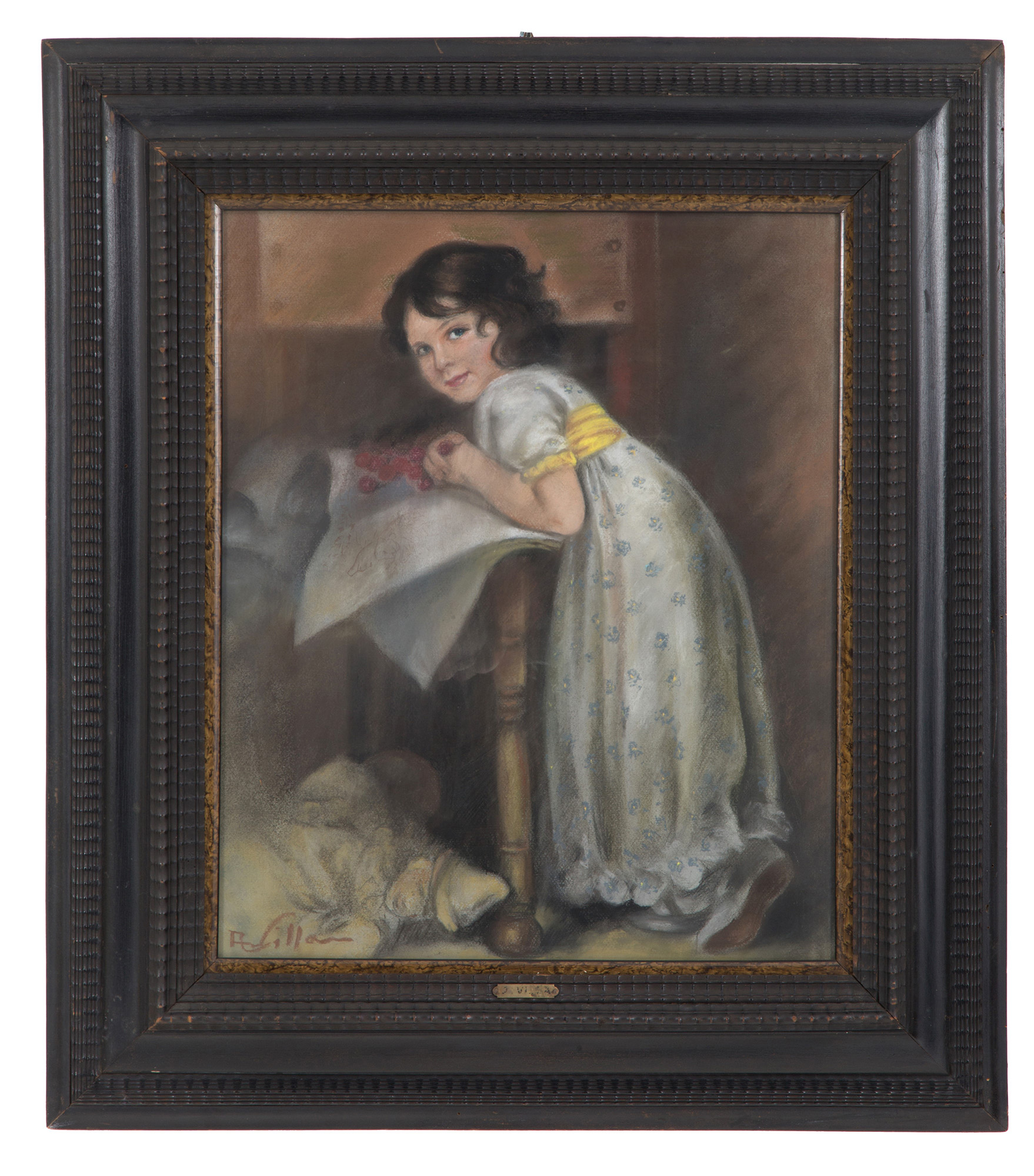 ALEARDO VILLA (Ravello, 1865 - Milano, 1906). Pastel on cardboard depicting "GIRL WITH CHERRIES". Signed lower left. In frame. 58x48 cm approx. ALEARDO VILLA (Ravello, 1865 - Milano, 1906). Pastello su cartoncino raffigurante "BAMBINA CON CILIEGIE". Firmato in basso a sinistra. In cornice. 58x48 cm ca.