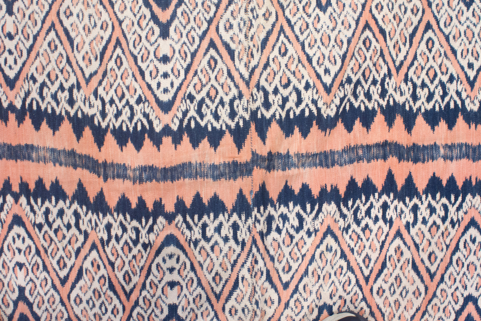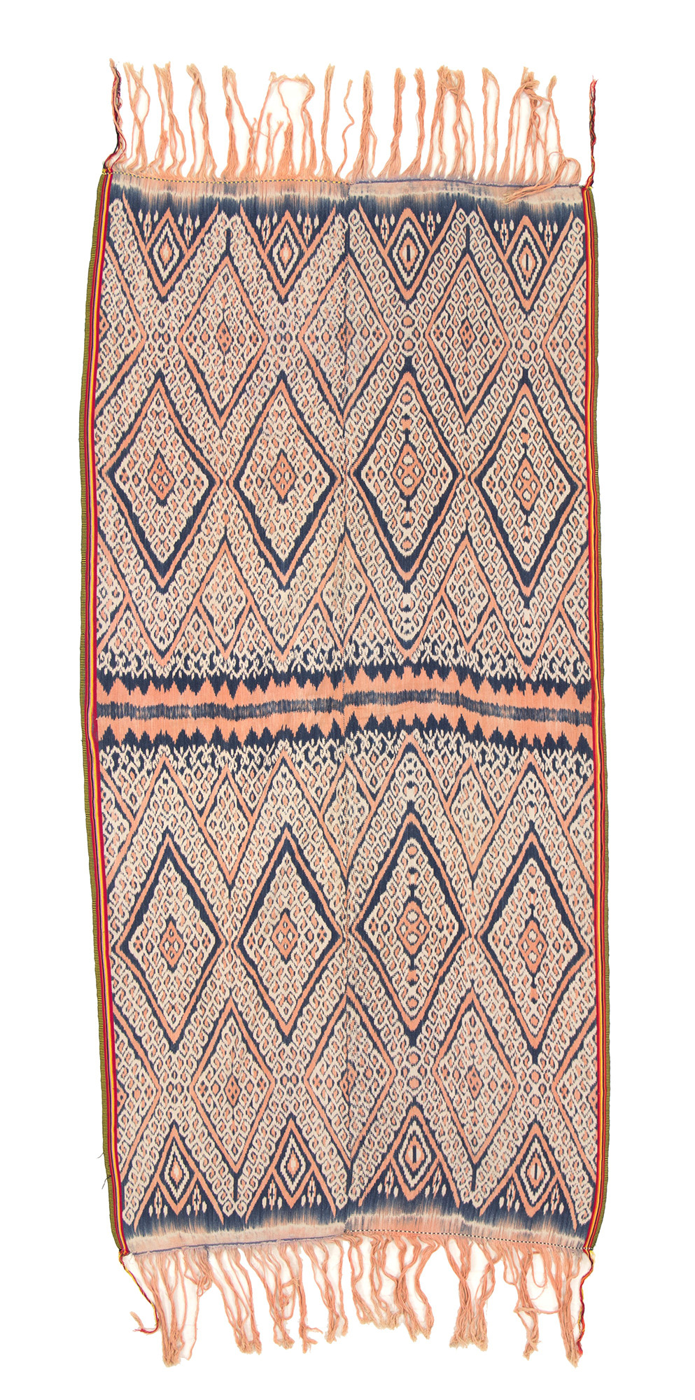 Timor Ikat fabric. Indonesia. 20th century. Excellent state of conservation. Original headers and edges, without restorations. 95x200cm approx. Tessuto Ikat Timor. Indonesia. XX secolo. Eccellente stato di conservazione. Testate e bordi originali, senza restauri. 95x200 cm ca.