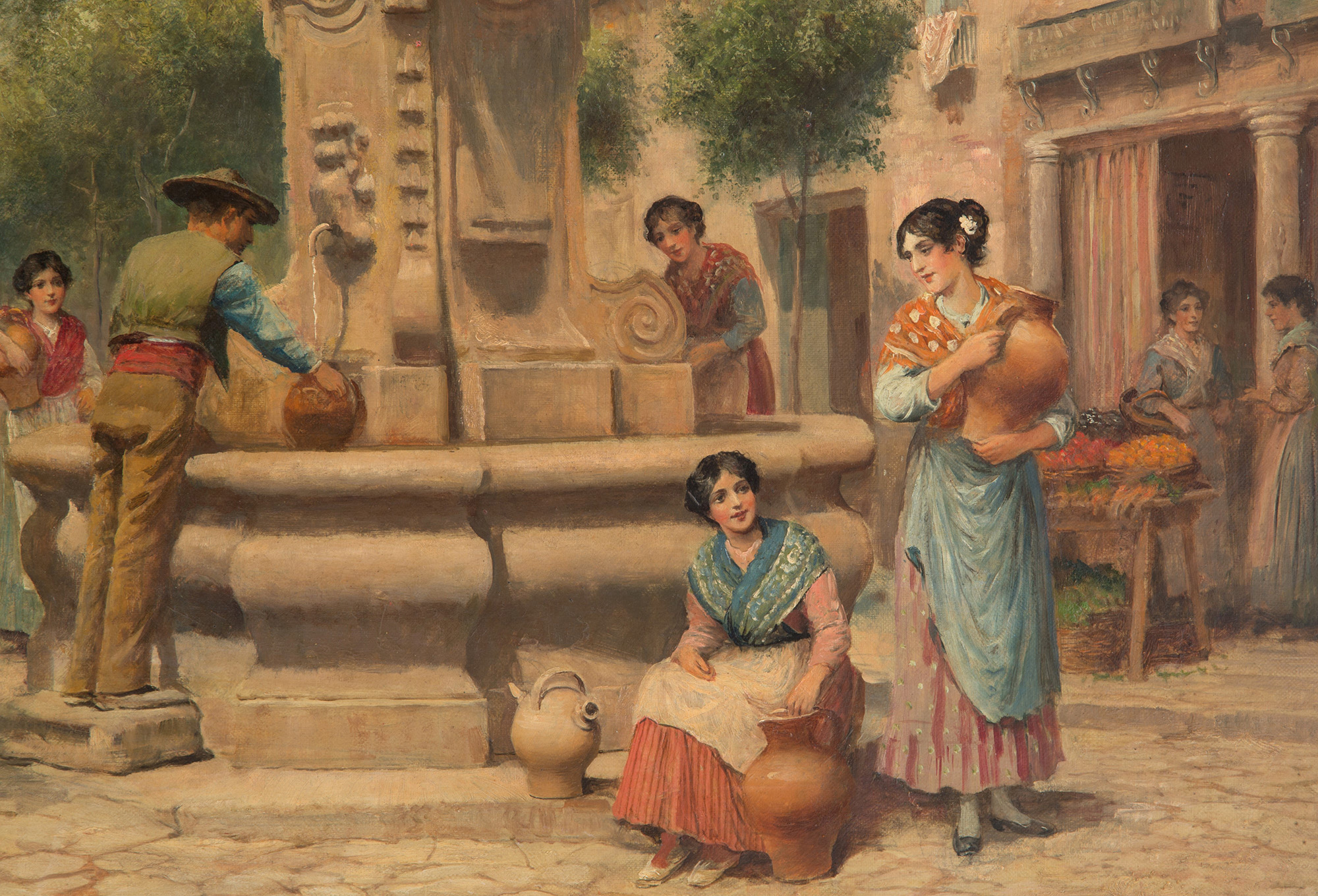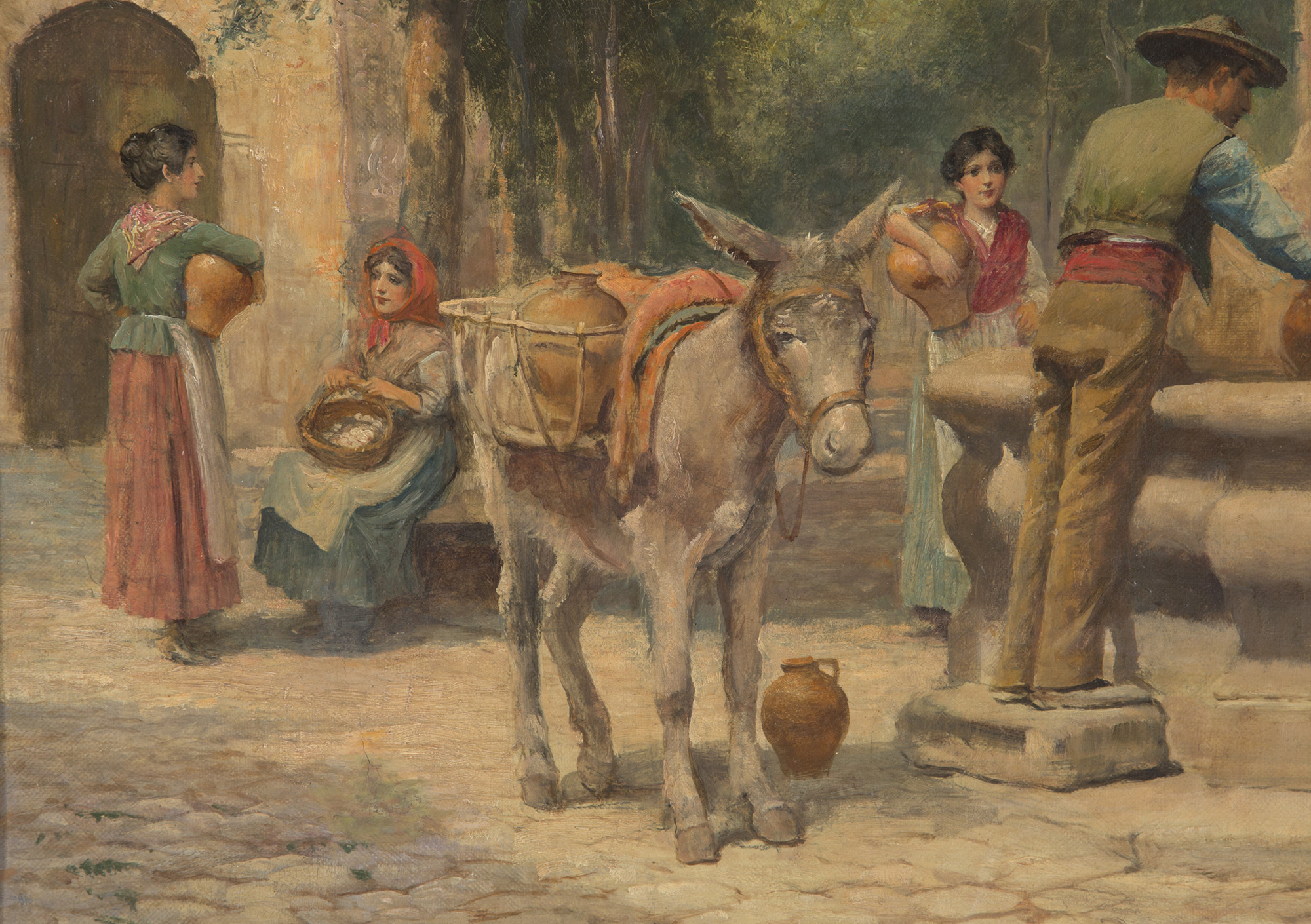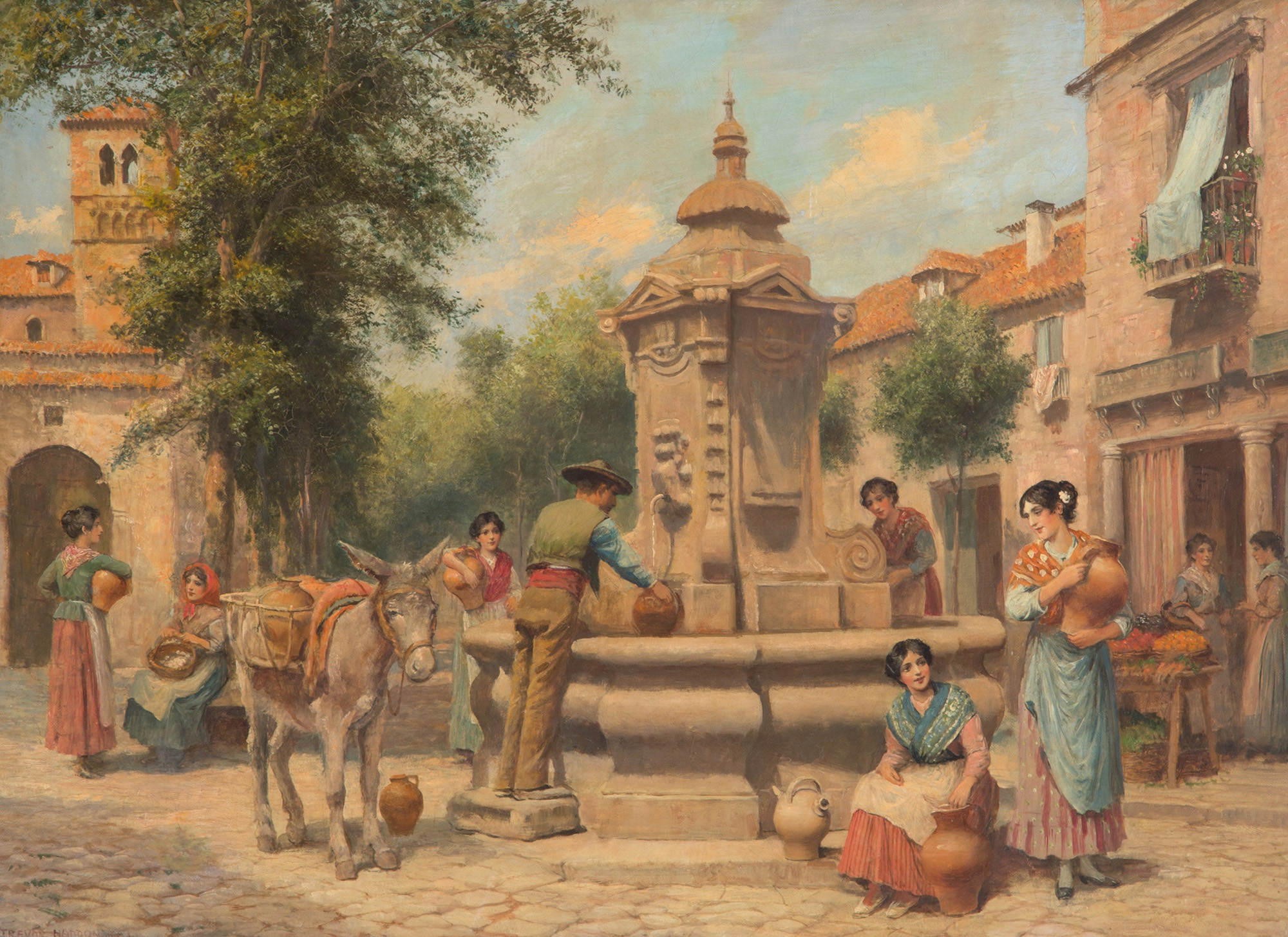 ARTHUR TREVOR HADDON (Londra 1864-Cambridge 1941). Oil painting on canvas depicting "PIAZZETTA WITH FOUNTAIN AND CHARACTERS" Signed lower left. In frame. Minor defects. 57x76.5 cm approx. ARTHUR TREVOR HADDON (Londra 1864-Cambridge 1941). Dipinto olio su tela raffigurante "PIAZZETTA CON FONTANA E PERSONAGGI" Firmato in basso a sinistra. In cornice. Lievi difetti. 57x76,5 cm ca.