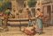 ARTHUR TREVOR HADDON. Painting "PIAZZETTA WITH FOUNTAIN AND CHARACTERS"