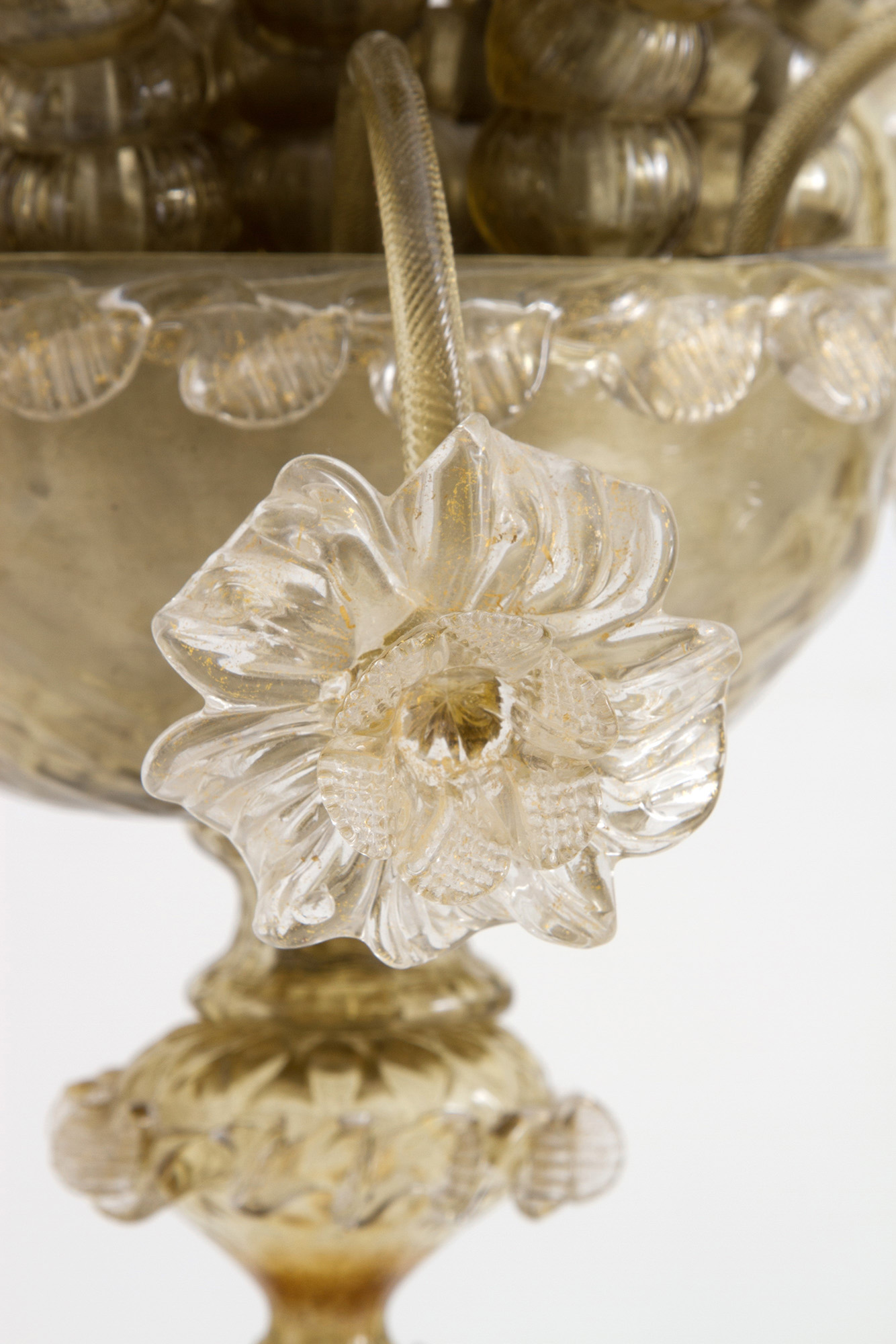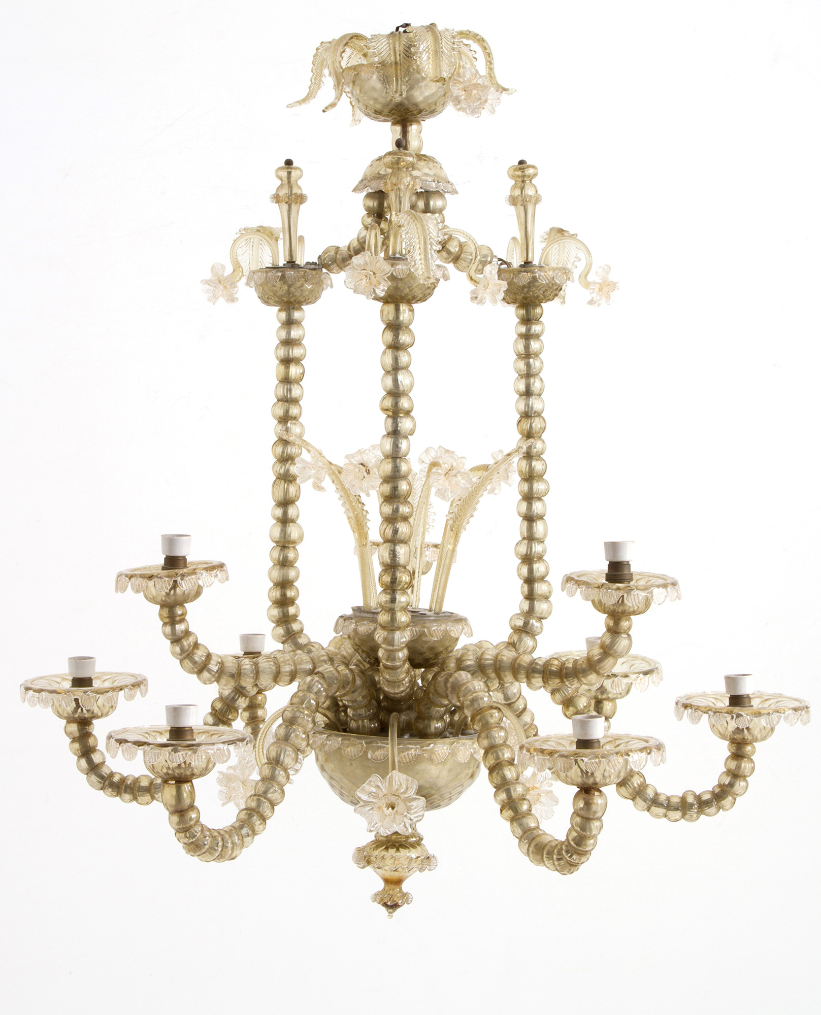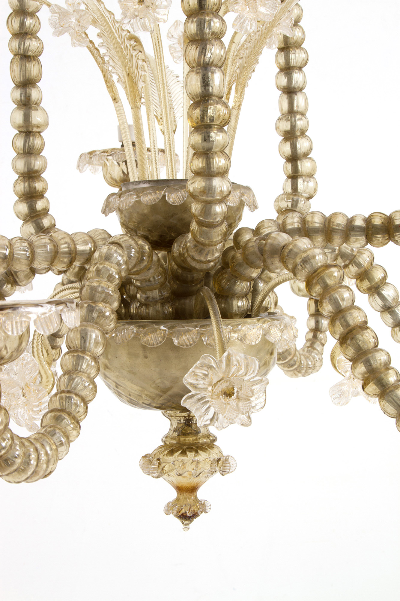 Nine-light chandelier in smoked Murano glass. 19th century. Small defects. 90x85 cm approx. Lampadario nove luci in vetro fume' di Murano. XIX secolo. Piccoli difetti. 90x85 cm ca.
