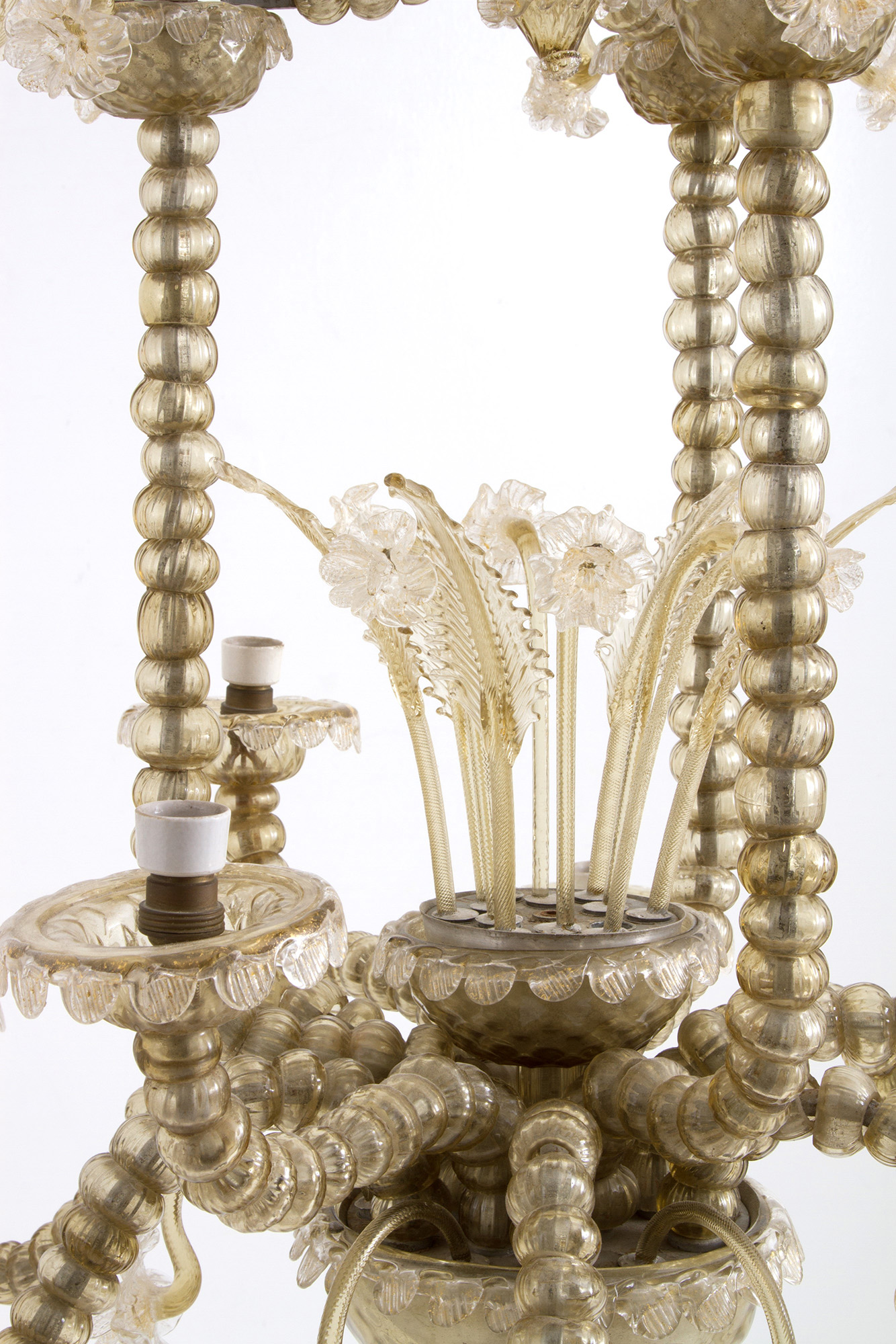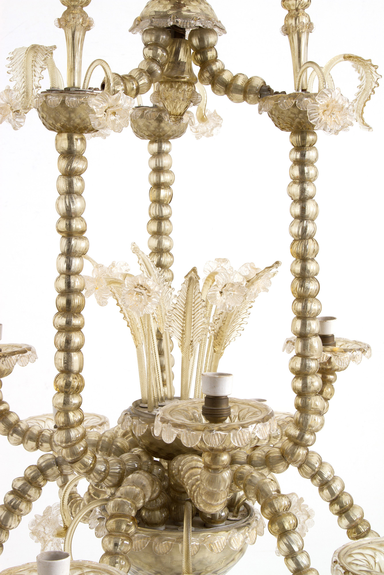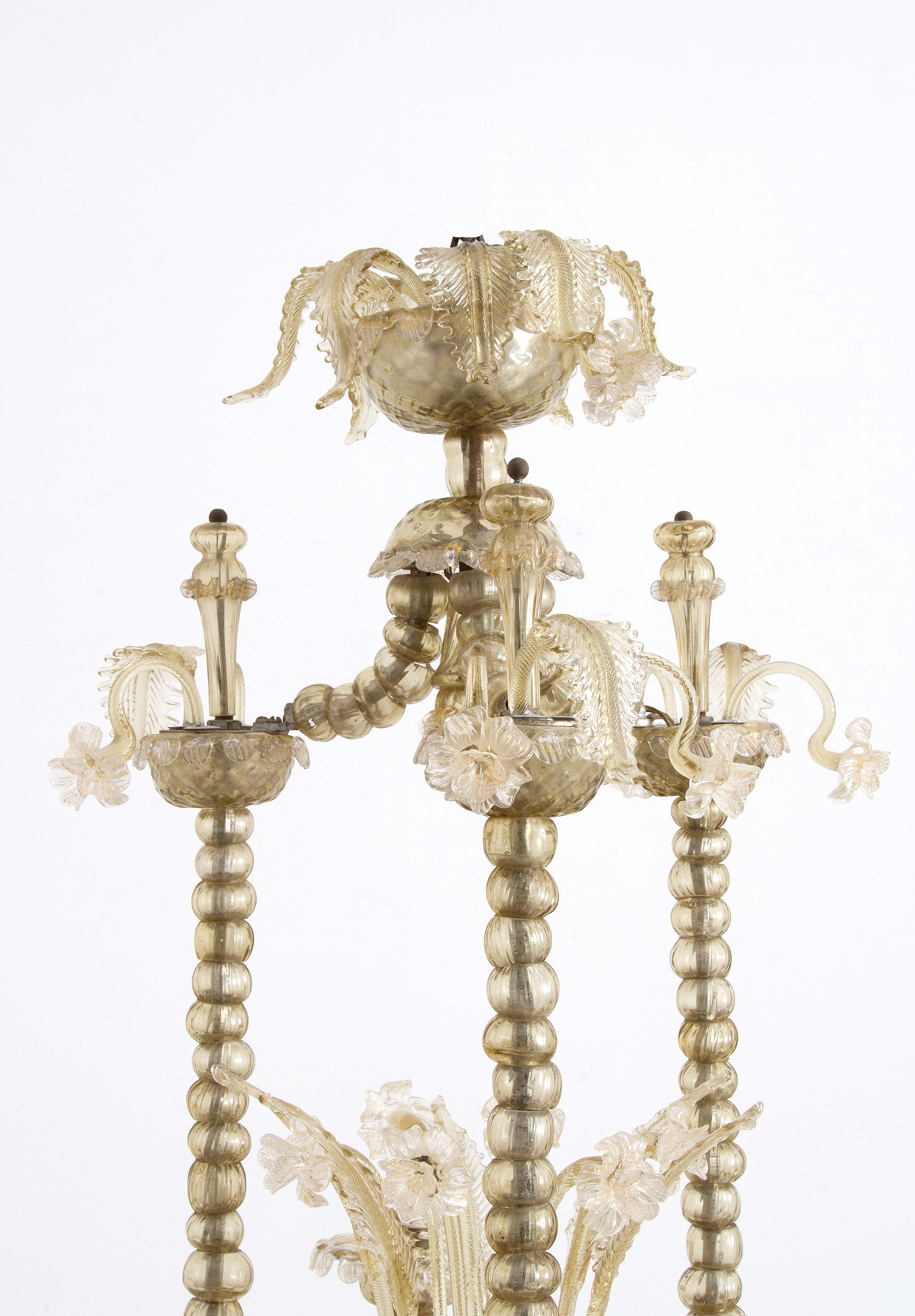 Nine-light chandelier in smoked Murano glass. 19th century. Small defects. 90x85 cm approx. Lampadario nove luci in vetro fume' di Murano. XIX secolo. Piccoli difetti. 90x85 cm ca.