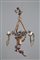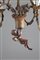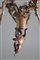 Three-light bronze chandelier highlighted in gold and patinated with a cherub hanging from a basket of flowers. Late 19th century. Defects. 90x60 cm approx. Lampadario tre luci in bronzo lumeggiato in oro e patinato con cherubino appeso ad una cesta di fiori. Fine XIX secolo. Difetti. 90x60 cm ca.