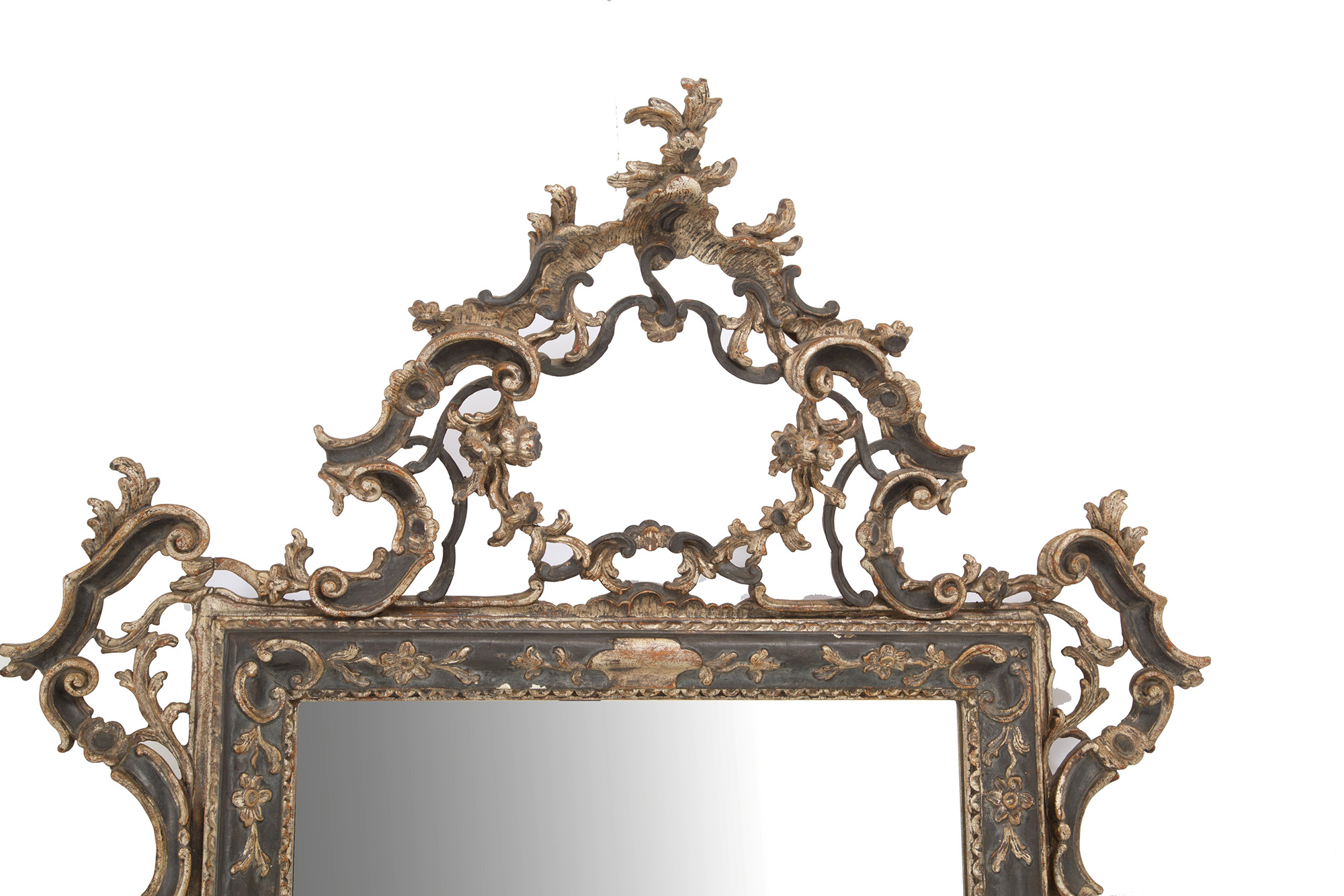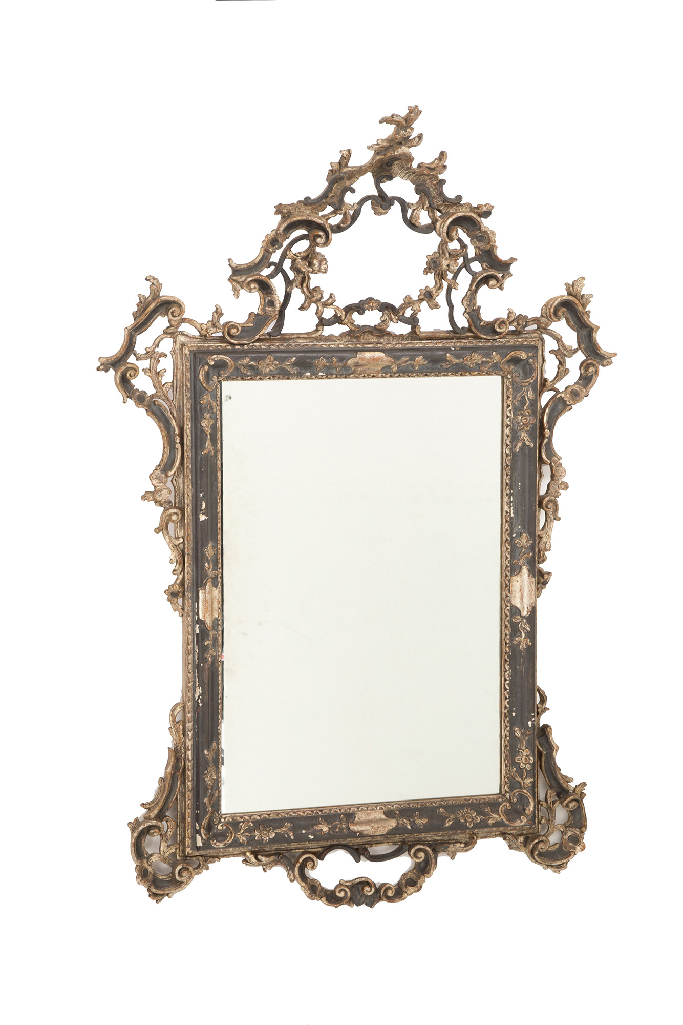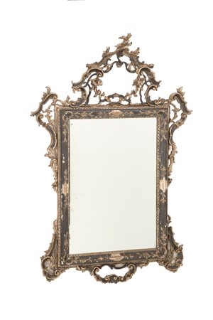 Mirror in carved, lacquered and mecca-gilded wood with scrolled friezes and rocaille. Luigi XV style. Venice. 19th century. Lacquering defects and small deficiencies. 140x100x25 cm approx. Specchiera in legno intagliato, laccato e dorato a mecca con fregi a volute e rocaille. Stile Luigi XV. Venezia. XIX secolo. Difetti alla laccature e piccole mancanze. 140x100x25 cm ca.