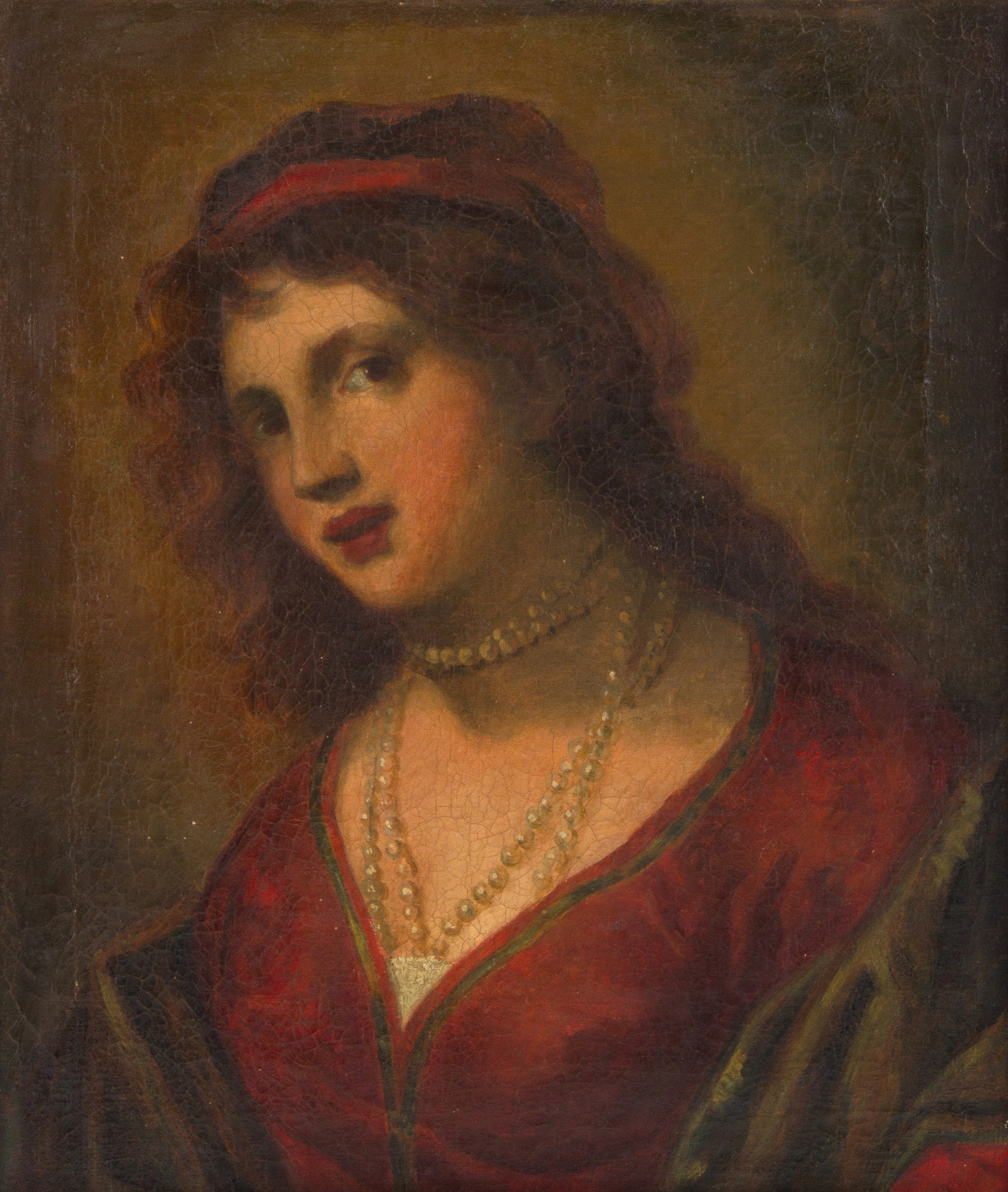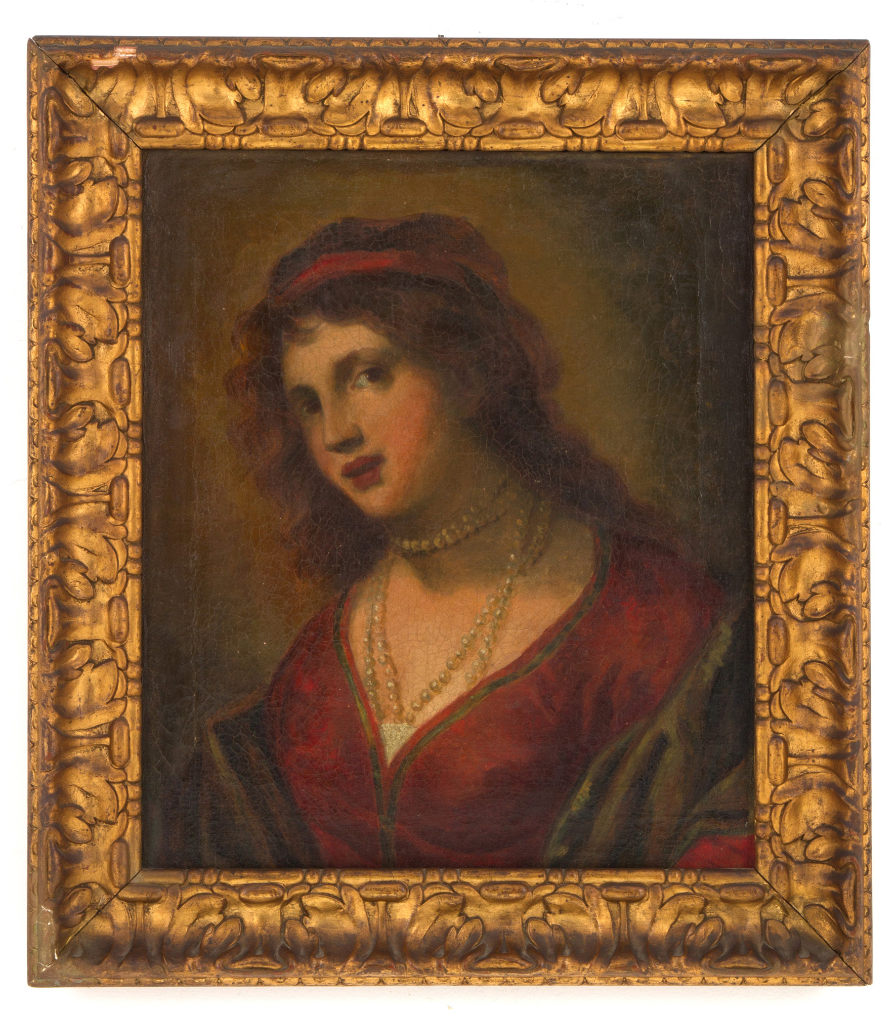 Oil painting on canvas depicting "PORTRAIT OF A WOMAN". Late 18th-early 19th century. In frame. Defects and restorations. Already reframed. 58x49 cm approx. Dipinto olio su tela raffigurante "RITRATTO DI DONNA". Fine XVIII-inizi XIX secolo. In cornice. Difetti e restauri. Gia' rintelaiato. 58x49 cm ca.