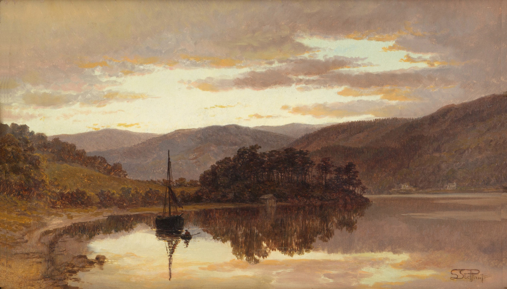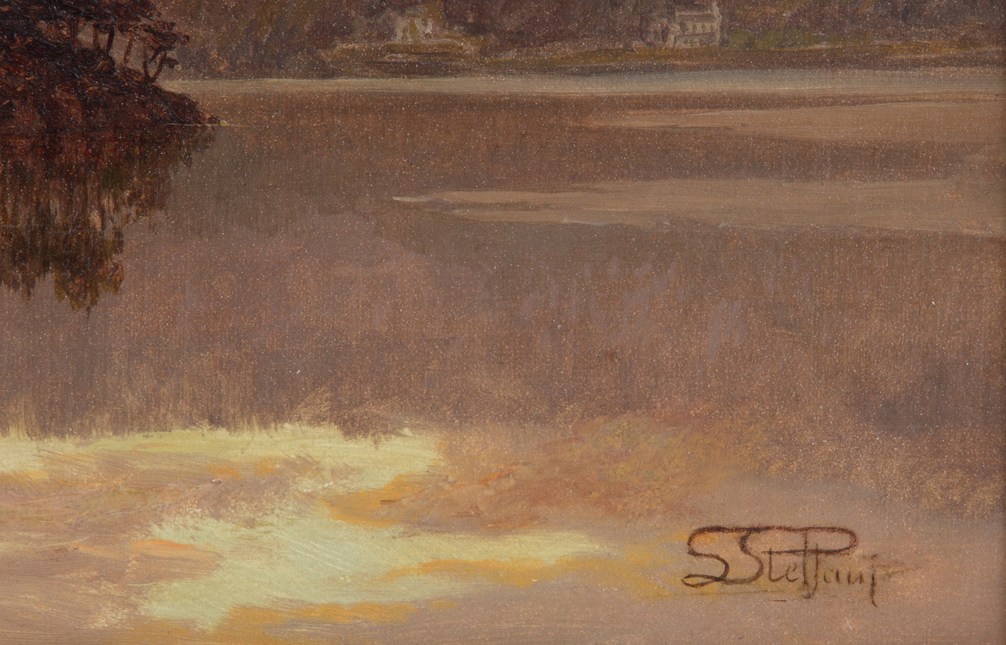 LUIGI STEFFANI. Painting "LACUSTRIAN LANDSCAPE"