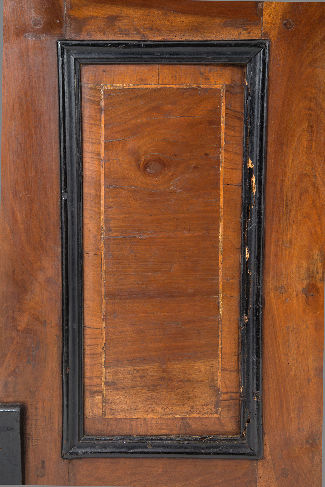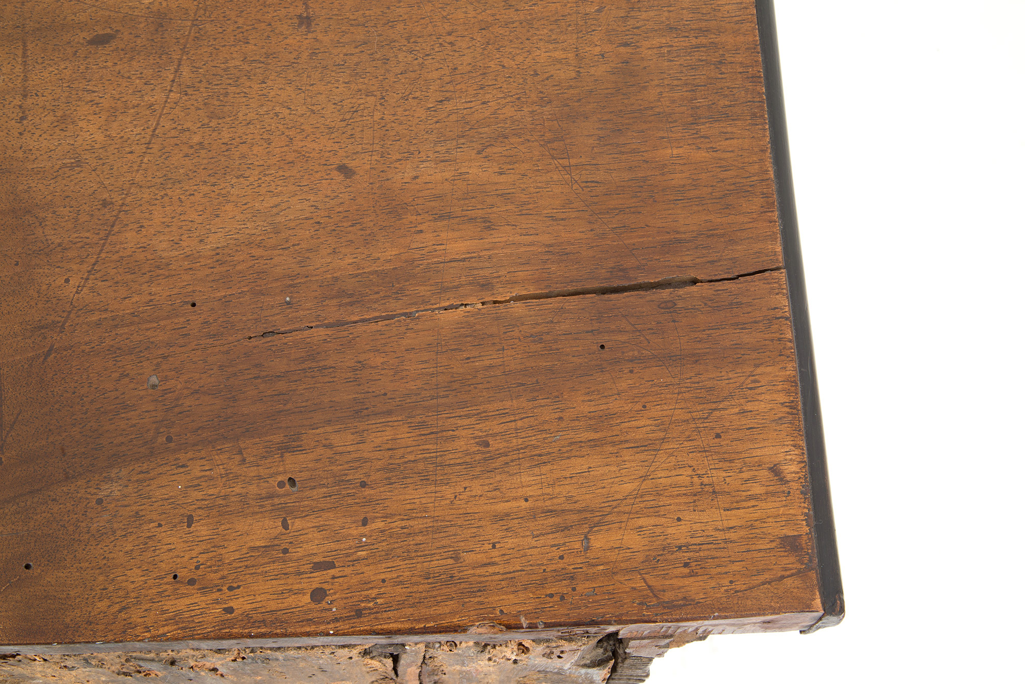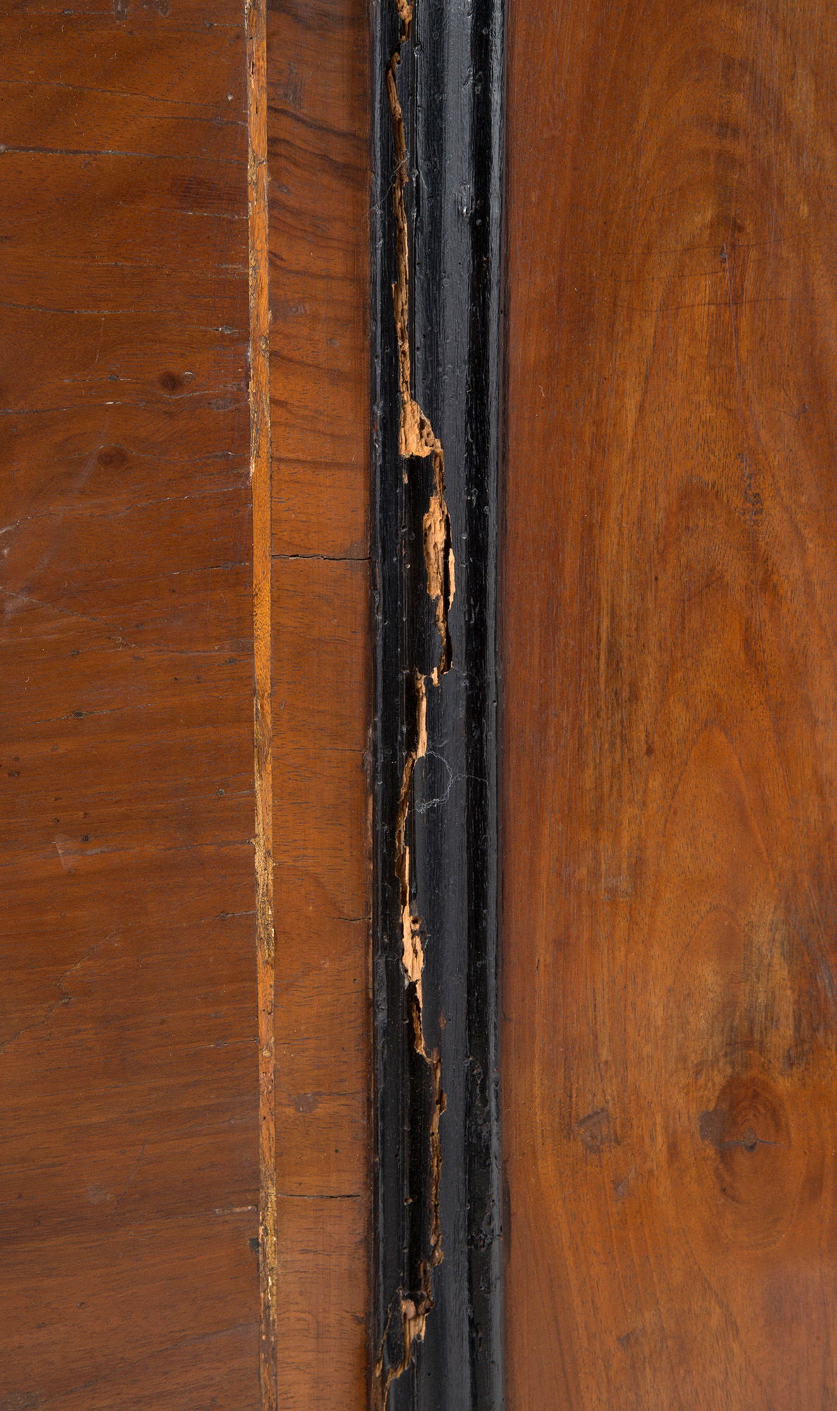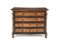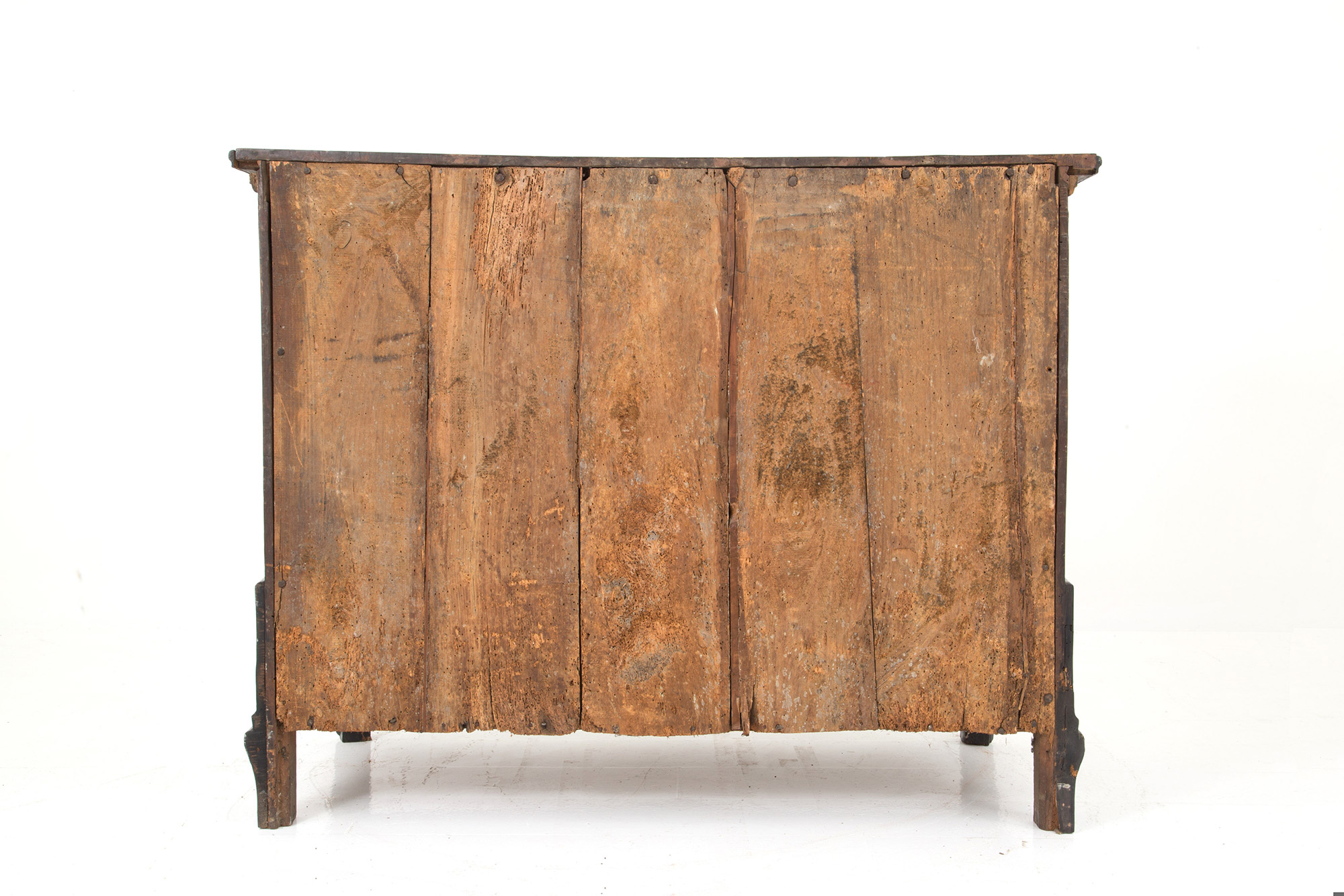Chest of drawers with a wavy front, veneered in walnut and inlaid in light woods with gilded and ebonized finishes and four drawers. Lombardy. 17th century. Defects. 111x142x62 cm approx. Canterano a fronte mosso lastronato in noce e intarsiato in legni chiari con finiture dorate ed ebanizzate e quattro cassetti. Lombardia. XVII secolo. Difetti. 111x142x62 cm ca.