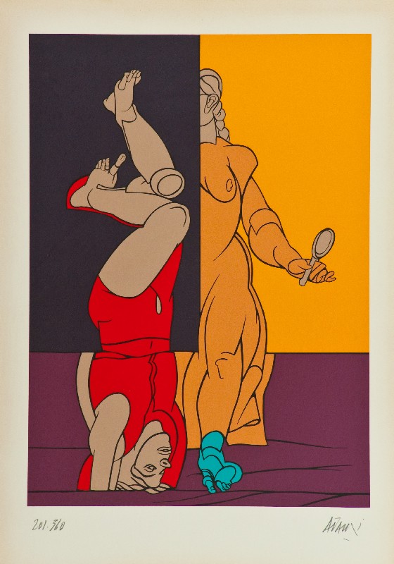 Valerio Adami (Bologna 1935) SENZA TITOLO Litografia su carta, cm. 70x50, es. 201/360 La carta presenta imperfezioni. Firma in basso a destra, tiratura in basso a sinistra.