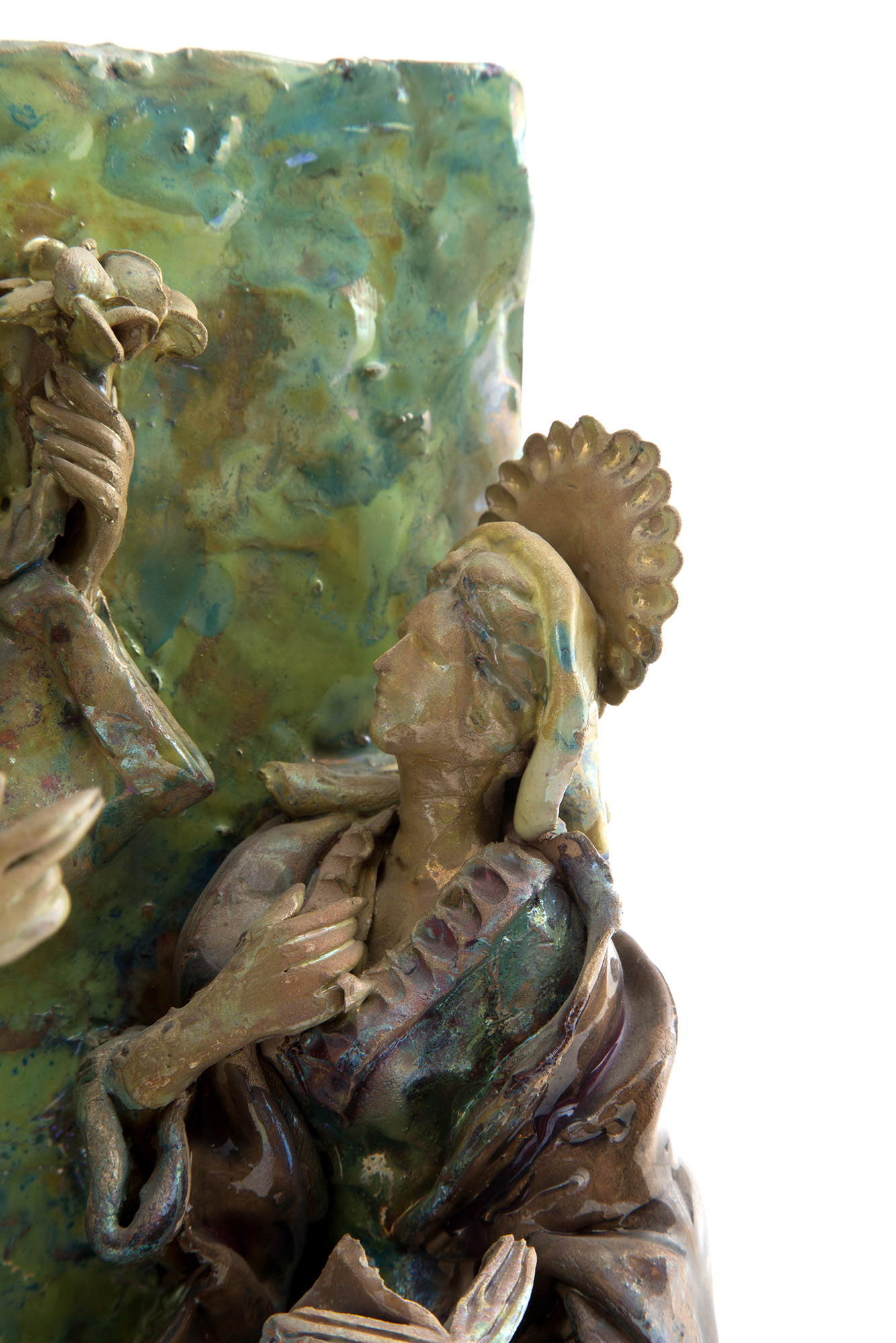 GIUSEPPE BONACCORSO. Glazed terracotta plaque depicting "ANNOUNCEMENT". Caltagirone. Signed on the bottom. 29x20x9 cm approx. GIUSEPPE BONACCORSO. Placca in terracotta invetriata raffigurante "ANNUNCIAZIONE". Caltagirone. Firmata sul fondo. 29x20x9 cm ca.