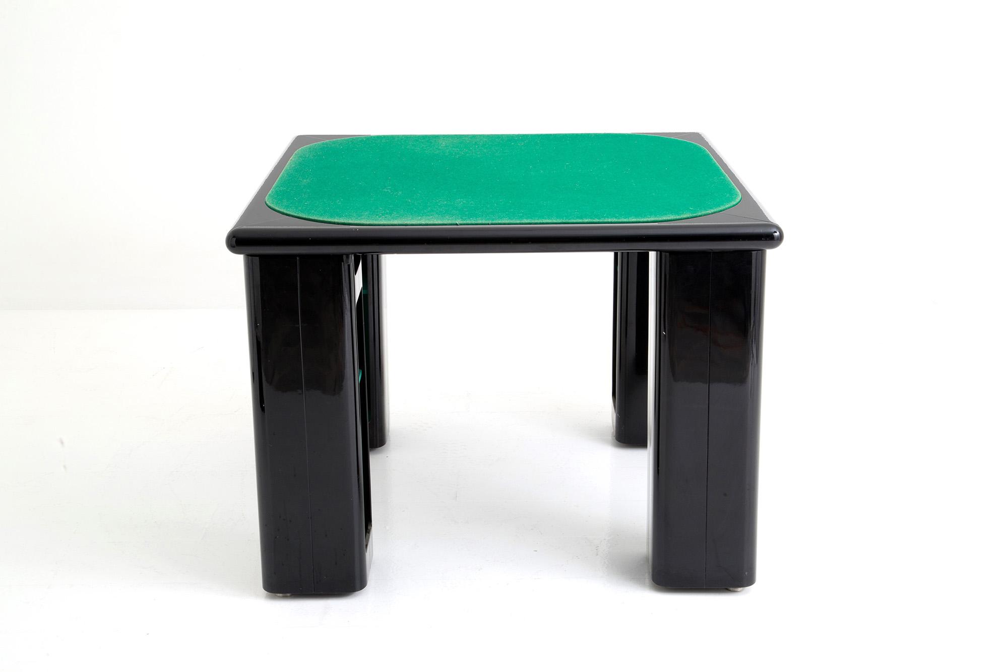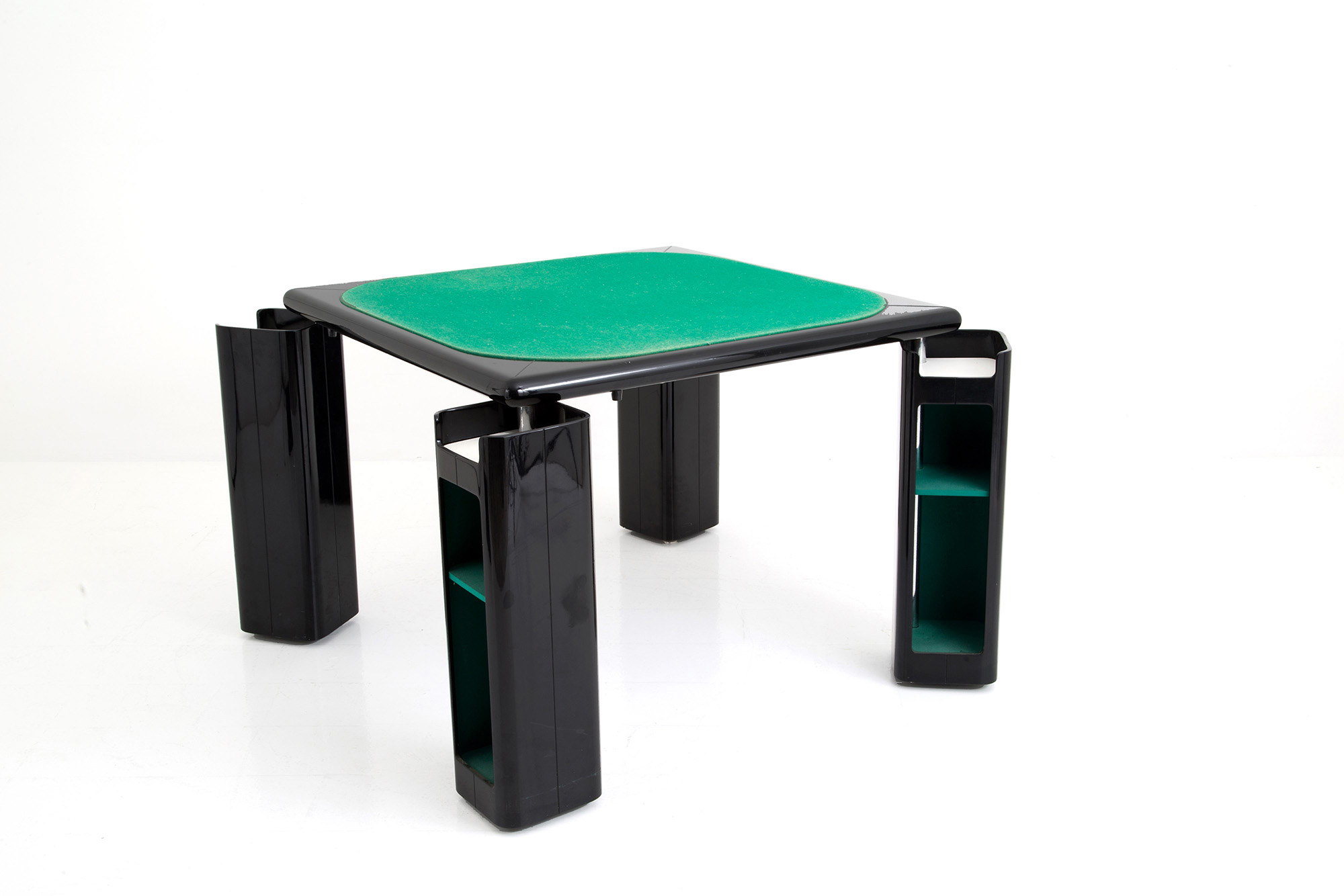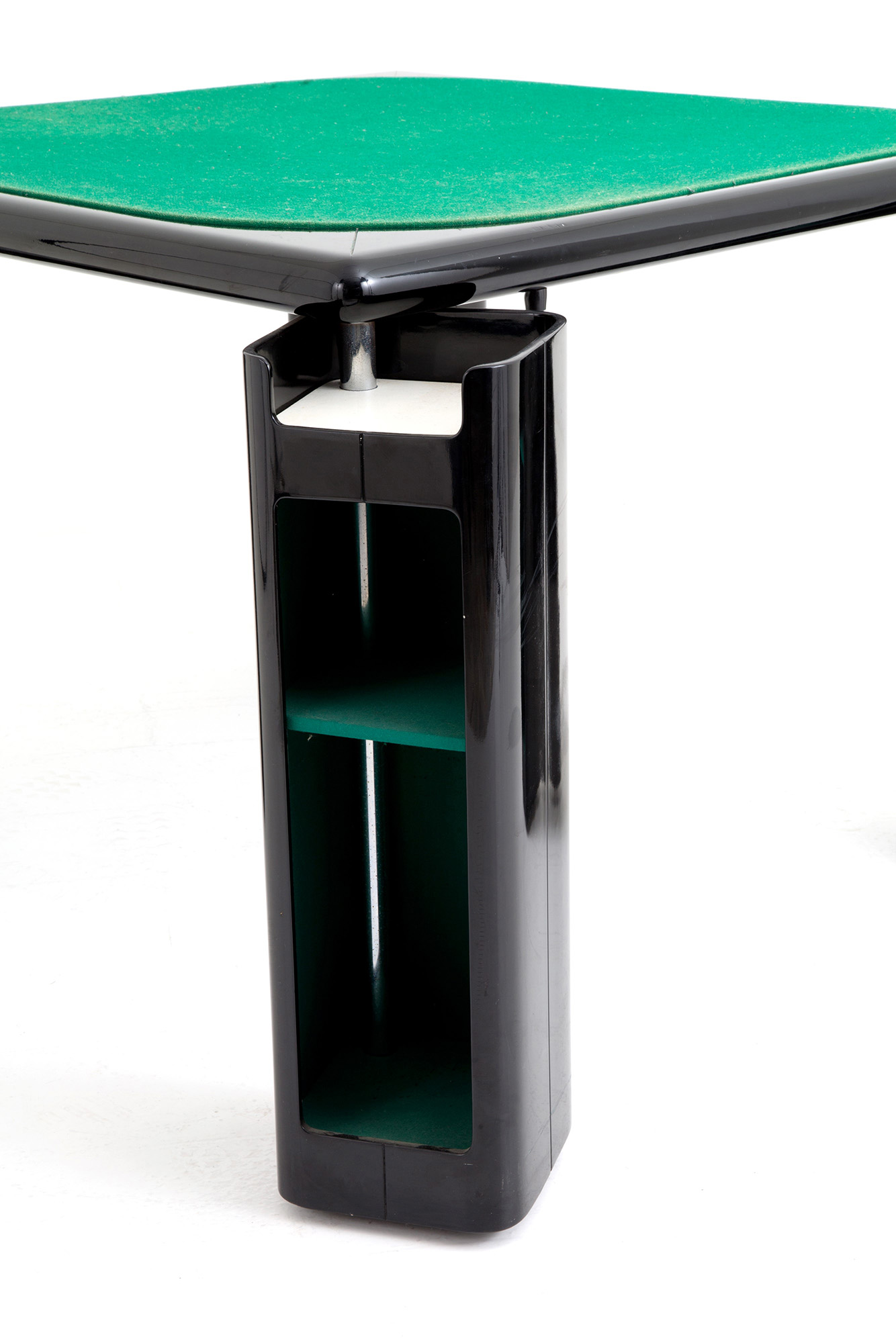 PIERLUIGI MOLINARI (Milano 1938). Game table with rotating legs with shelves. POZZI production. 70's. Defects.