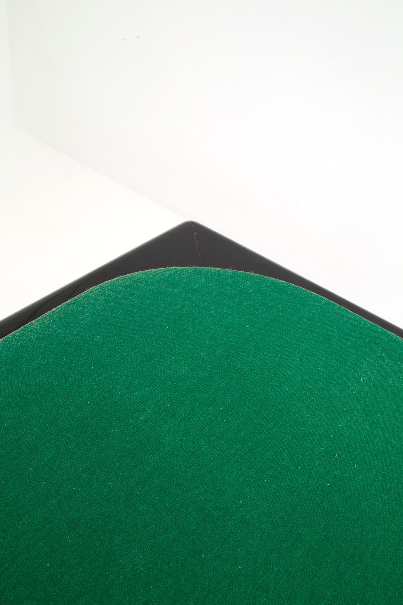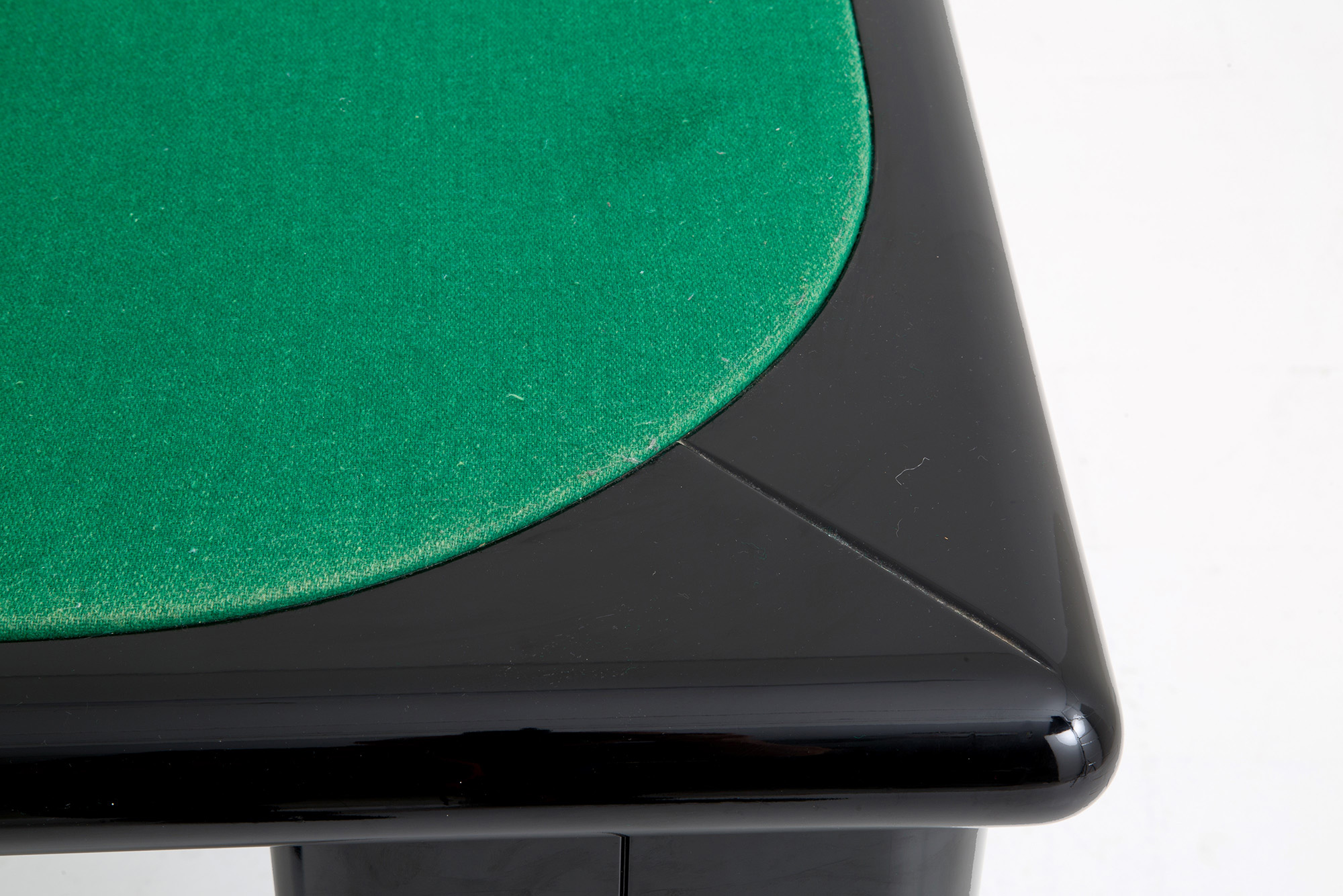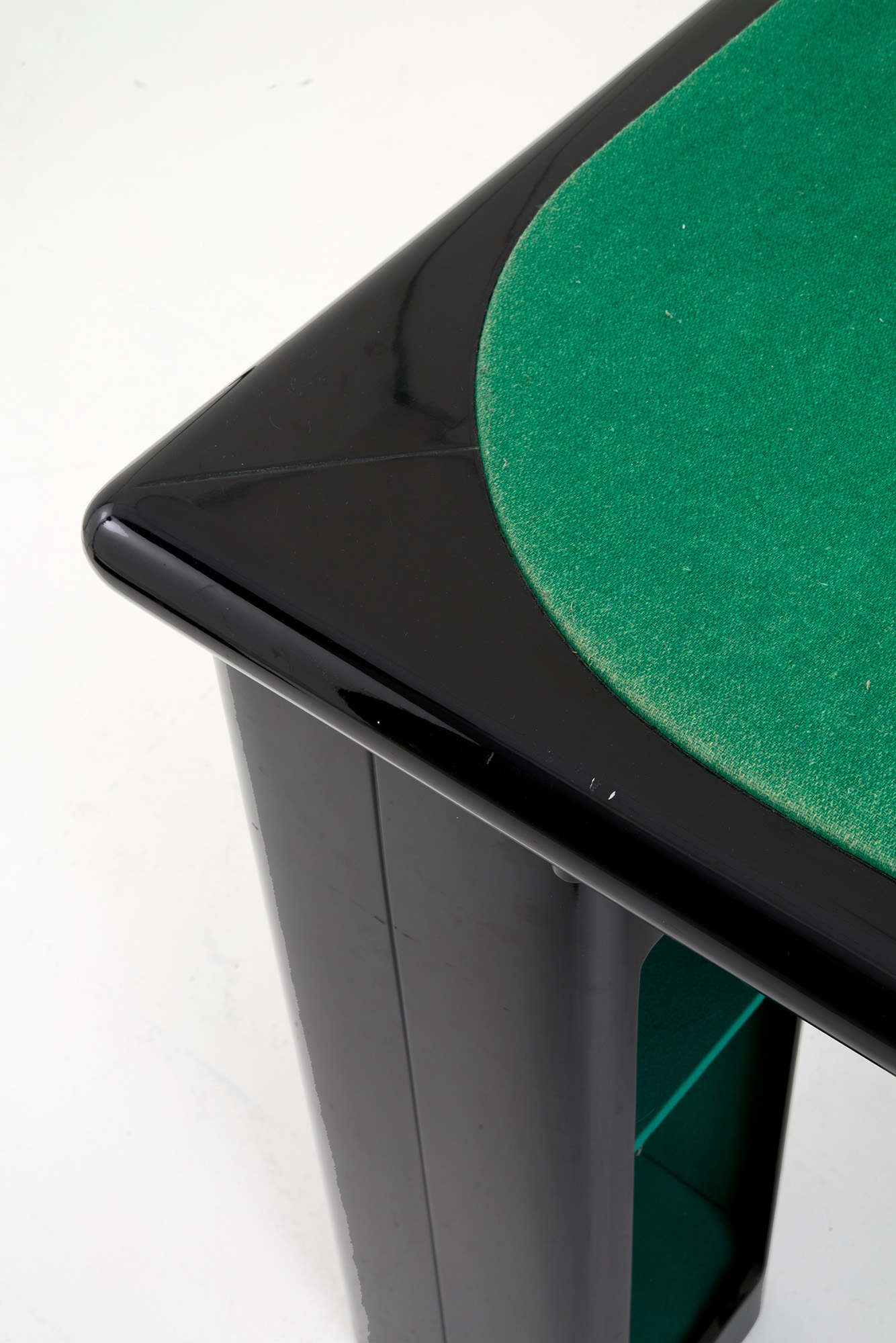 75x102x102 cm approx. PIERLUIGI MOLINARI (Milano 1938). Tavolo da gioco con gambe rotanti con ripiani. Produzione POZZI. Anni '70. Difetti.