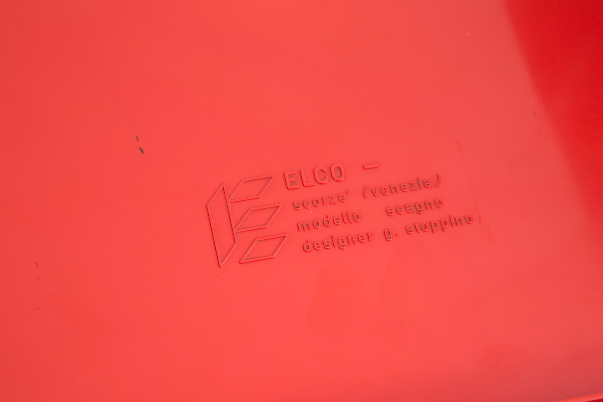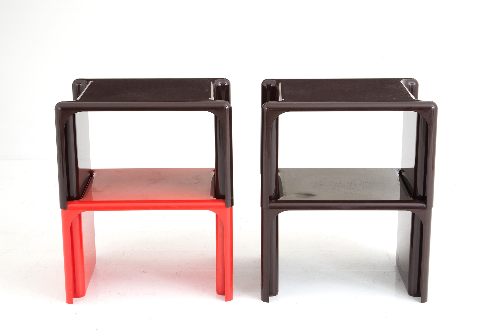 GIOTTO STOPPINO (Vigevano 1926-Milano 2011). Four Scagno model modular tables in plastic material. ELCO production. Marked and signed on the bottom. 32x51x39 cm approx. each one GIOTTO STOPPINO (Vigevano 1926-Milano 2011). Quattro tavolini componibili modello Scagno in materiale plastico. Produzione ELCO. Marcati e firmati sul fondo. 32x51x39 cm ca. cad