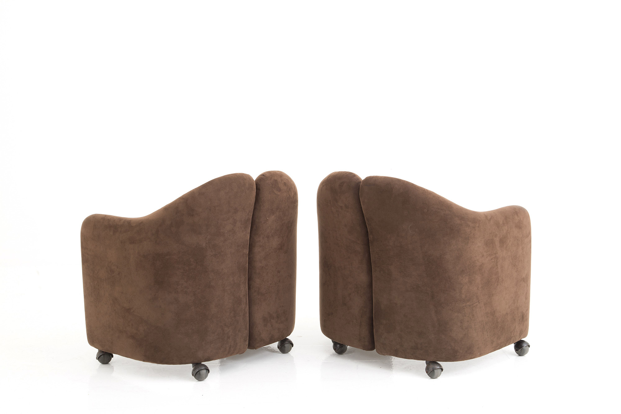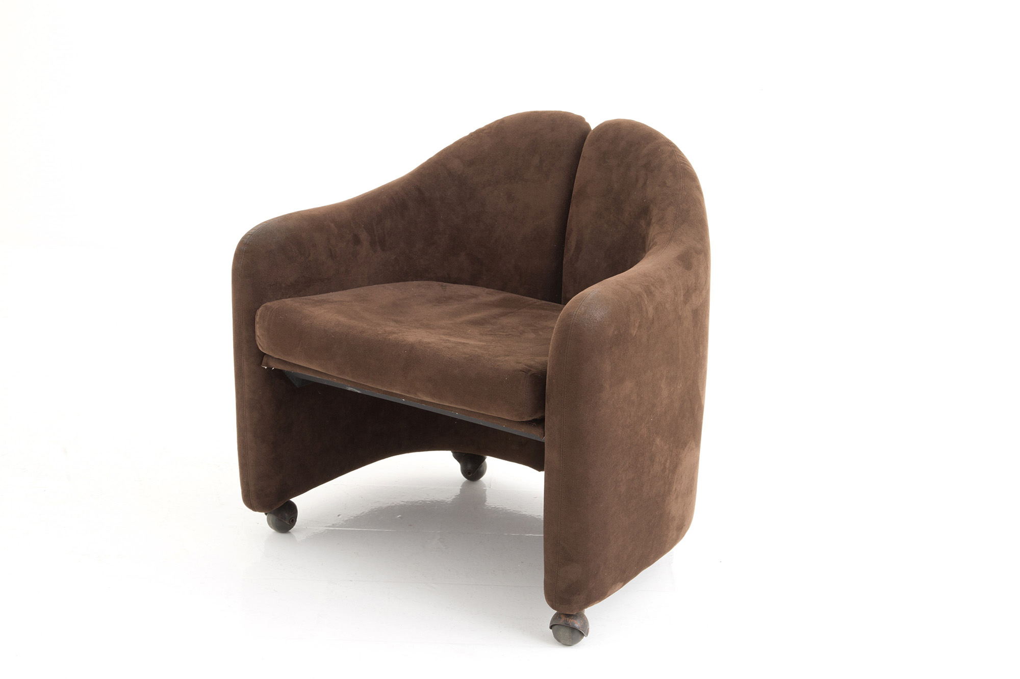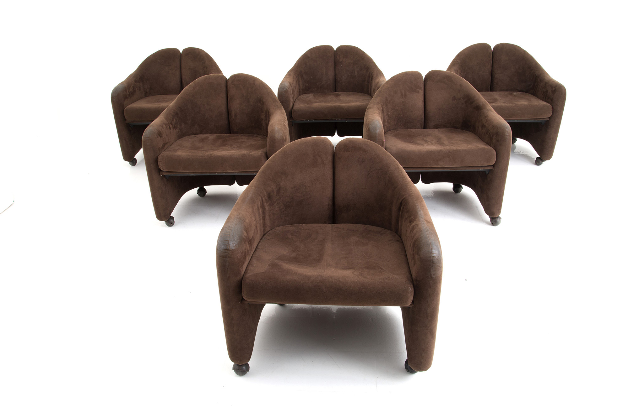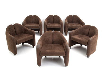 OSVALDO BORSANI (Varedo 1911-Milano 1985) - EUGENIO GERLI (Milano 1923-2013). Six Ps142 model armchairs padded and covered in brown Alcantara. TECNO production. 60's. Signes of wear and tear over time. 67x66x54 cm approx. OSVALDO BORSANI (Varedo 1911-Milano 1985) - EUGENIO GERLI (Milano 1923-2013). Sei poltroncine modello Ps142 imbottite e rivestite in alcantara marrone. Produzione TECNO. Anni '60. Segni di usura del tempo. 67x66x54 cm ca.