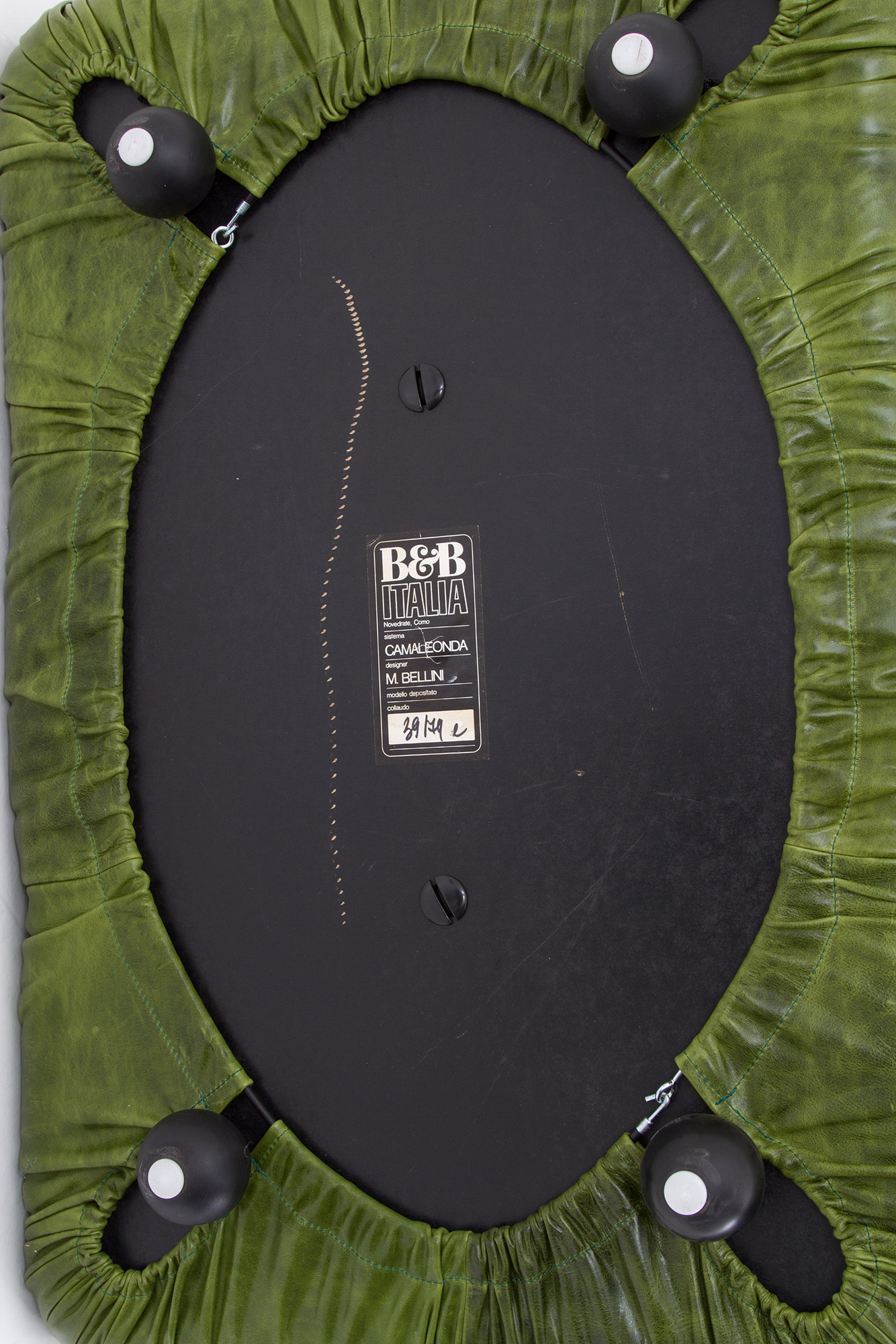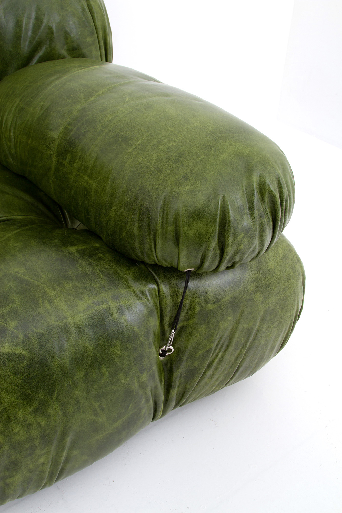 MARIO BELLINI (Milano 1935). Camaleonda sofa, composed of five wooden modules covered in green leather and steel tie rods. With manufacturer's label under each seat. 70's. Slight signs of wear and tear over time.