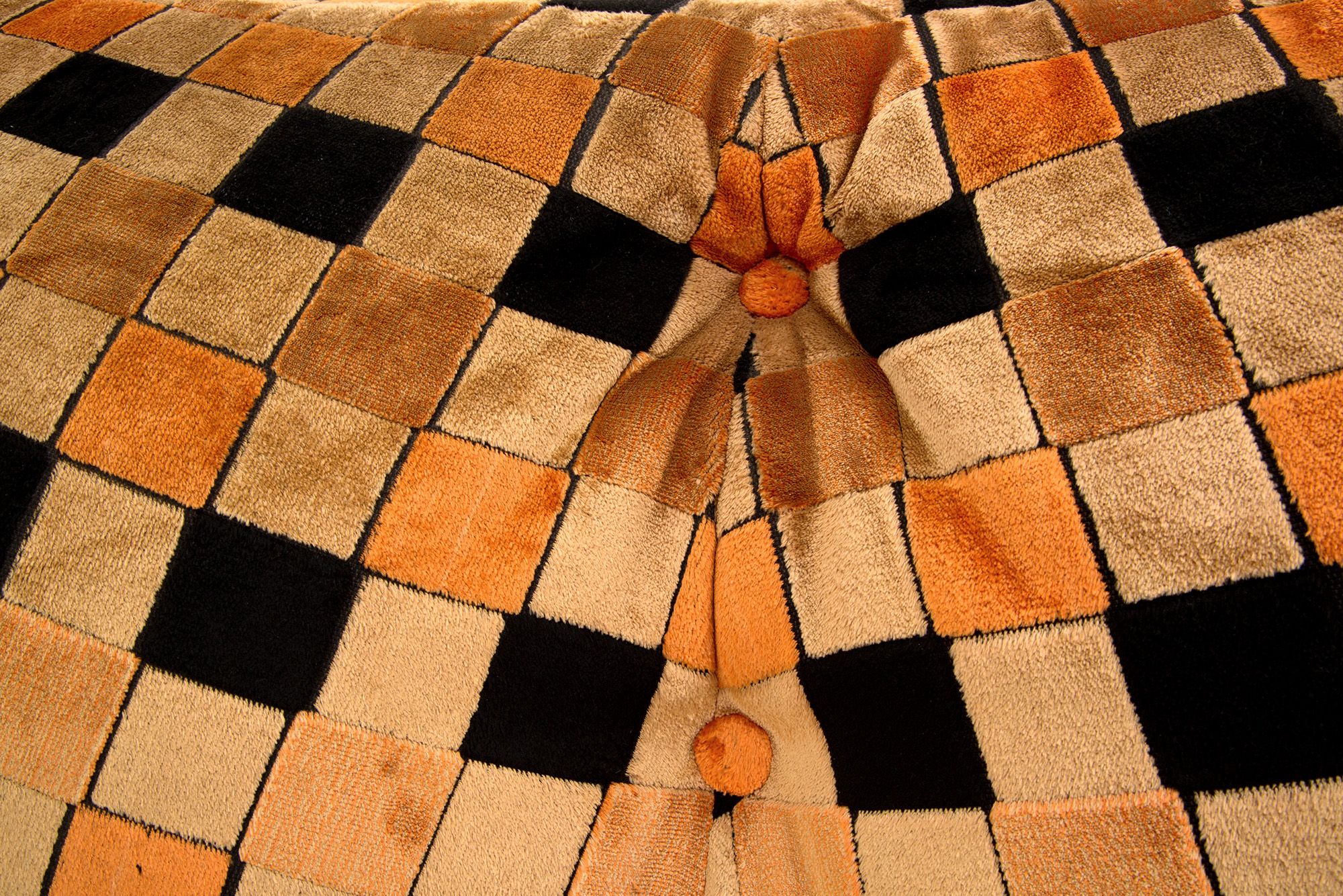 Three ZOZO model armchairs, one of which angolar, fully padded and covered in fabric. SEVEN SALOTTI production. With manufacturer's mark on the bottom. 1970s.