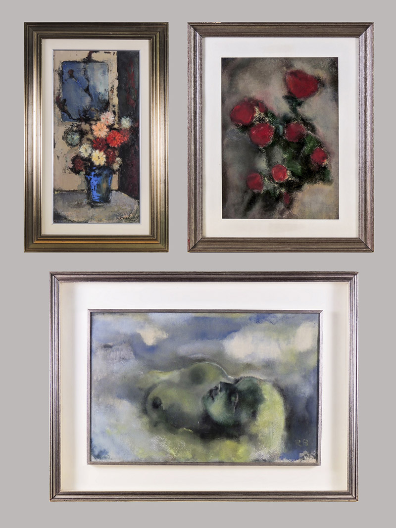 MISCELLANEA DI DIPINTI - PANTINGS LOT Marco Taglioli, Monastero de Piedra, olio su tela; due nature morte con fiori ed un ritratto femminile; Natura morta con fagiano, olio su tela; Romano Battaglia (1933-2012), Armenti e Vaso con fiori, olio su tela, firmato; stampa indiana a batik su seta (7)