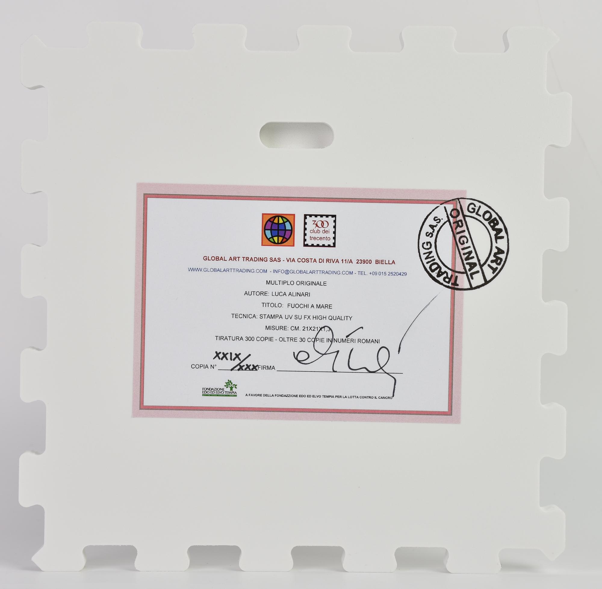 Luca Alinari FUOCHI A MARE stampa UV su FX high quality bianco, cm 21x21x1,3;...