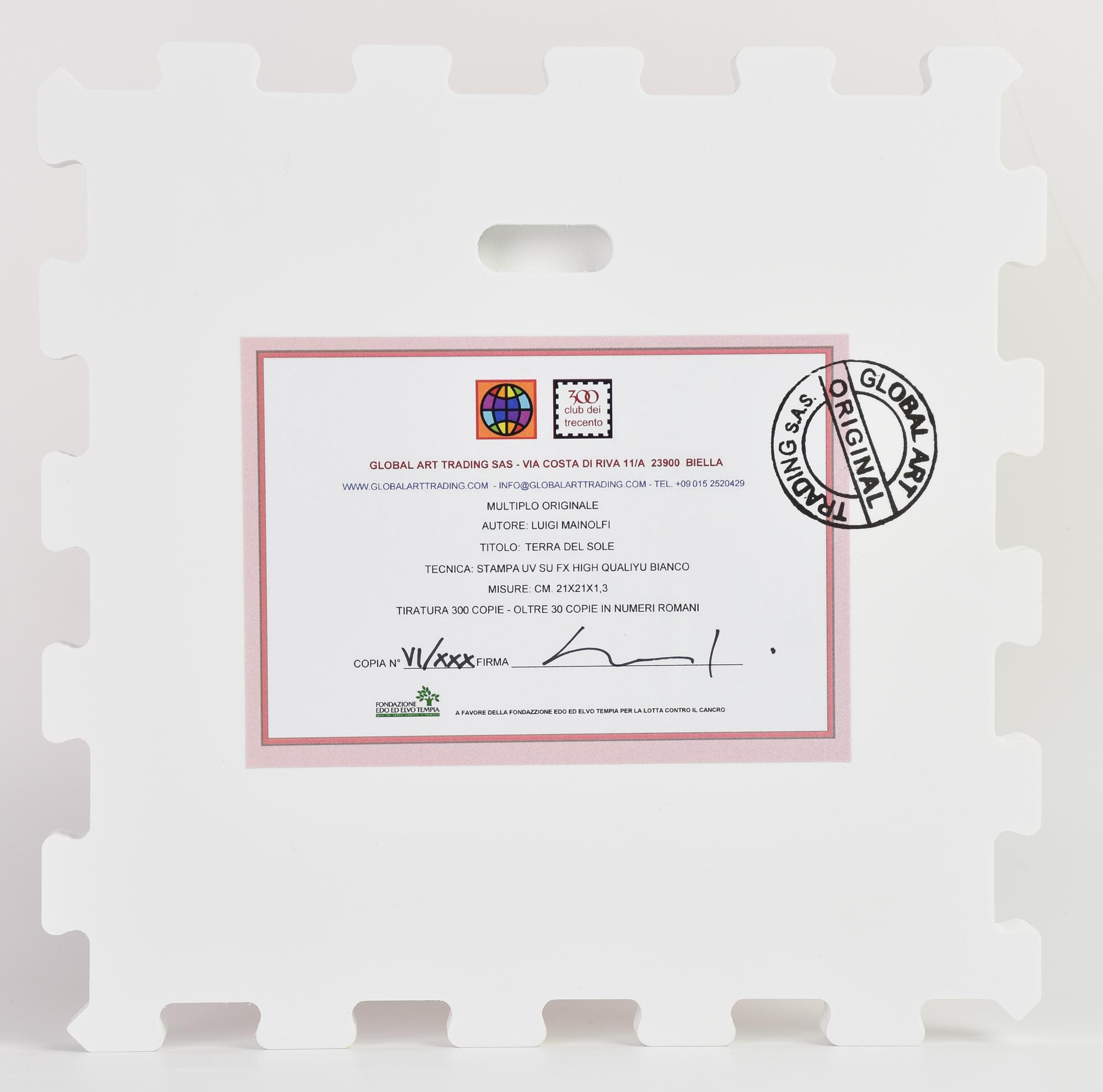 Luigi Mainolfi TERRA DEL UV su FX high quality bianco, cm 21x21x1,3; es....