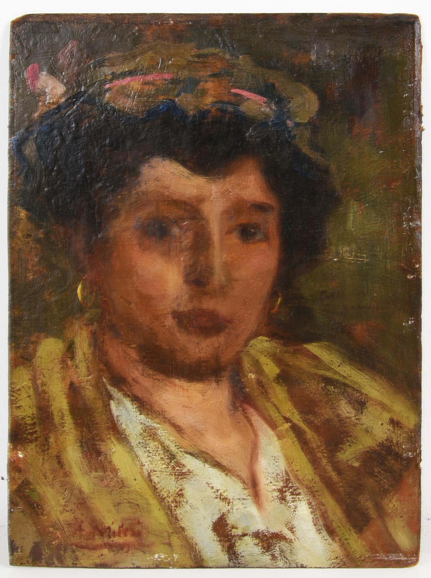 Alessandro Milesi RITRATTO FEMMINILE olio su tavola, cm 40,4x29,5 firma...