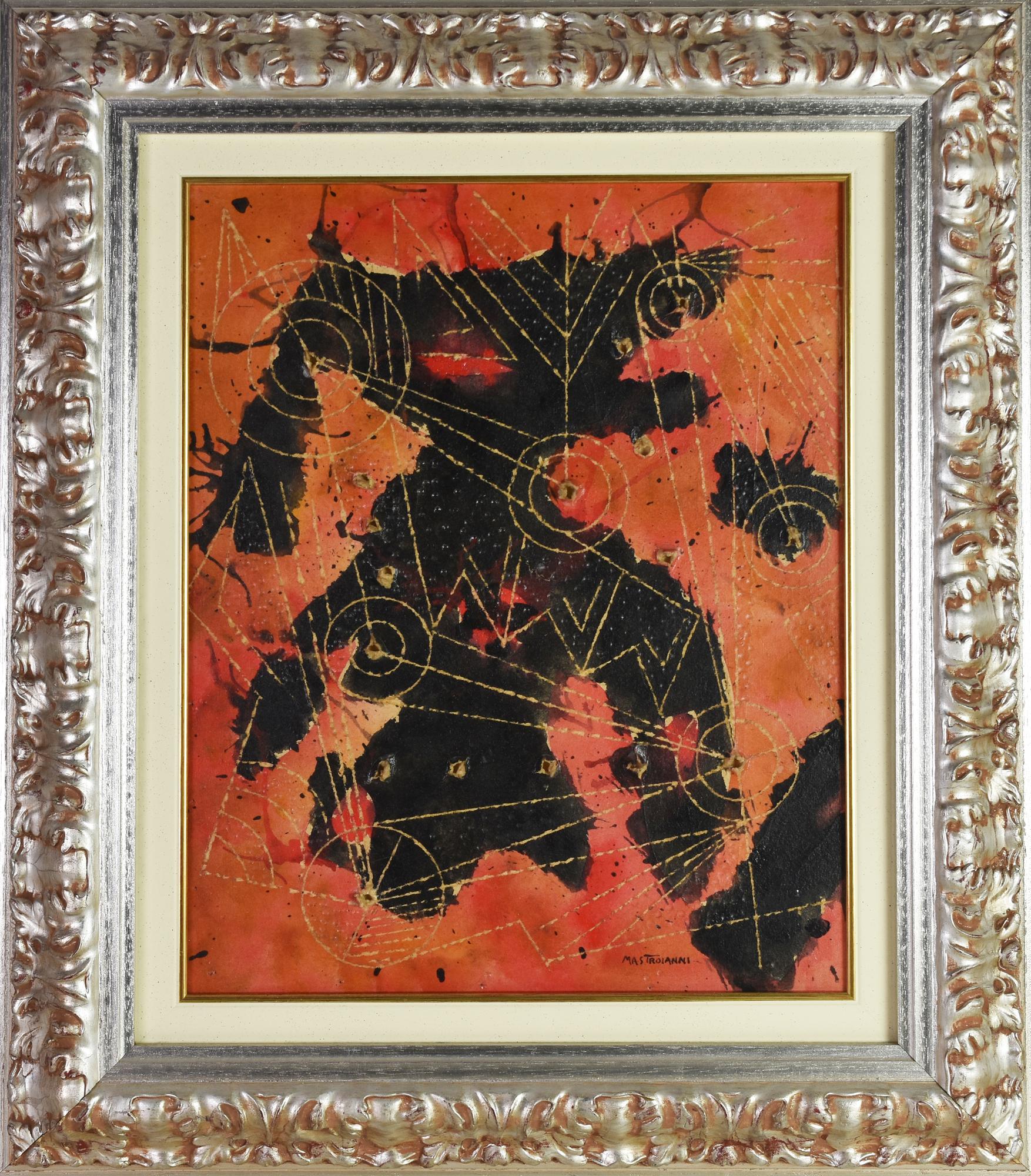 Umberto Mastroianni COMPOSIZIONE tecnica mista su cartone graffiato applicato...