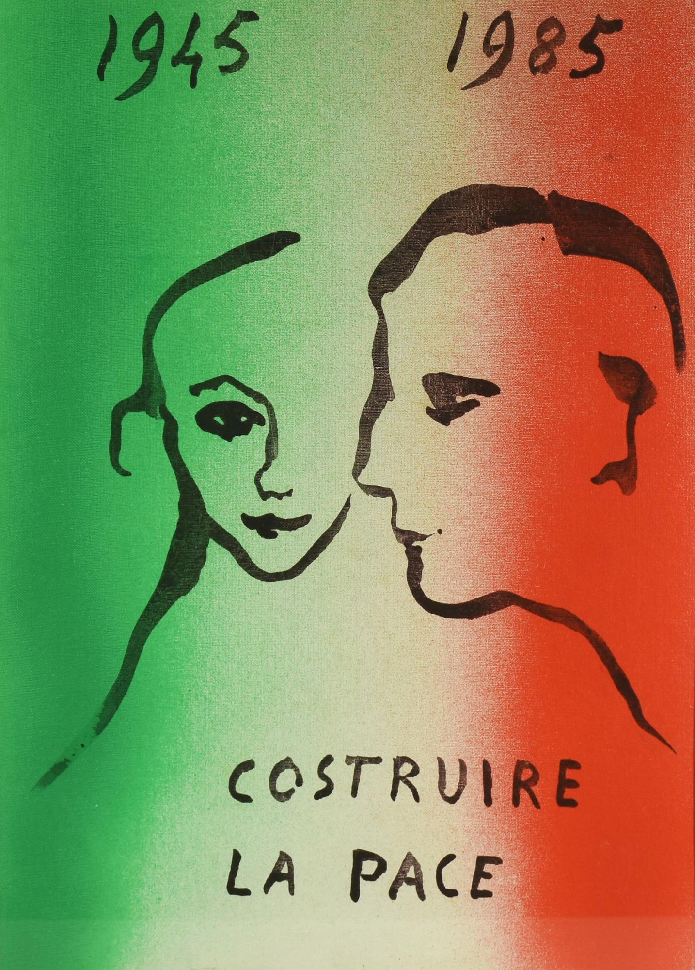 Ernesto Treccani COSTRUIRE LA PACE 1945-1985 tecnica mista su cartone telato,...