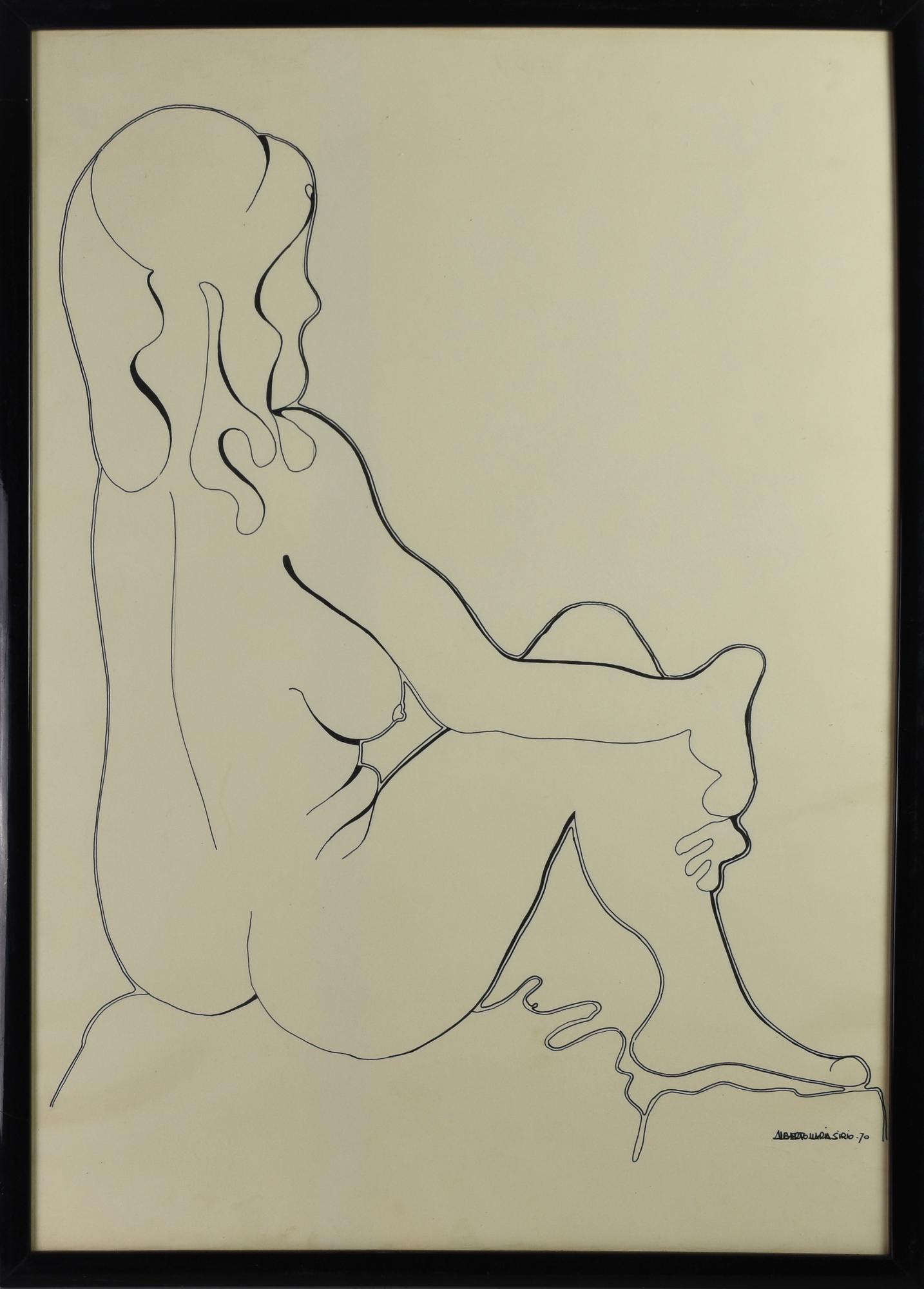 Alberto Maria Sirio NUDO, 1970 inchiostro nero su carta, cm 72x50 firma e...