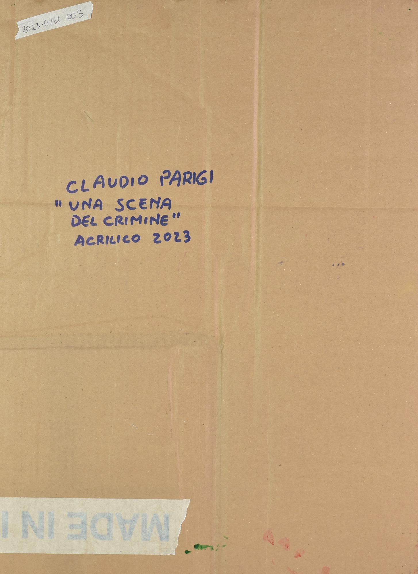 Claudio Parigi SCENA DEL CRIMINE, 2023 acrilico su cartone, cm 50,5x37 firma...