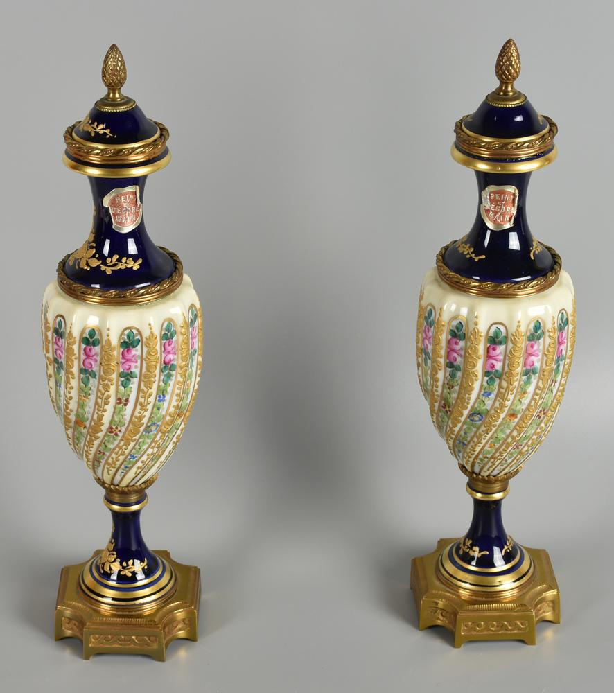 Lot 43 | COPPIA DI VASI AD URNA IN PORCELLANA DI SEVRESblu cobalto decorata a mano con...