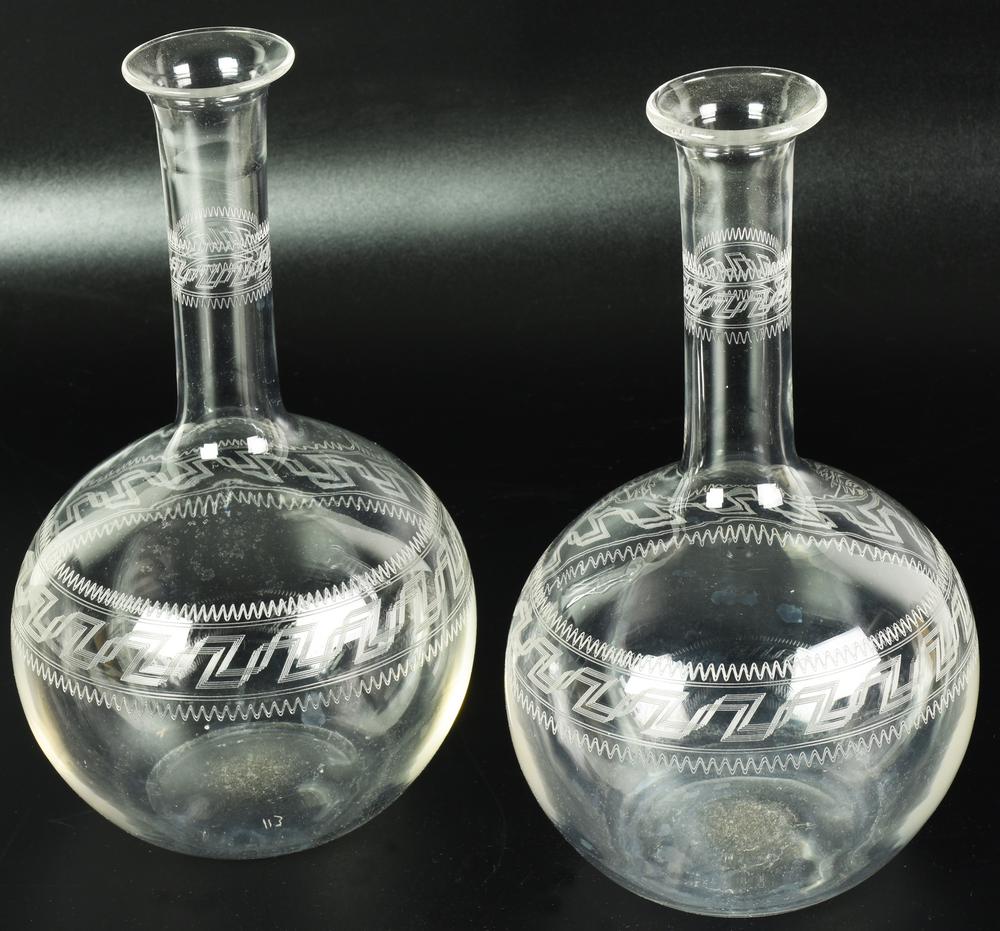 COPPIA DI VASI IN VETRO MOLATI in vetro, h cm 30 circa ciascuno (2)