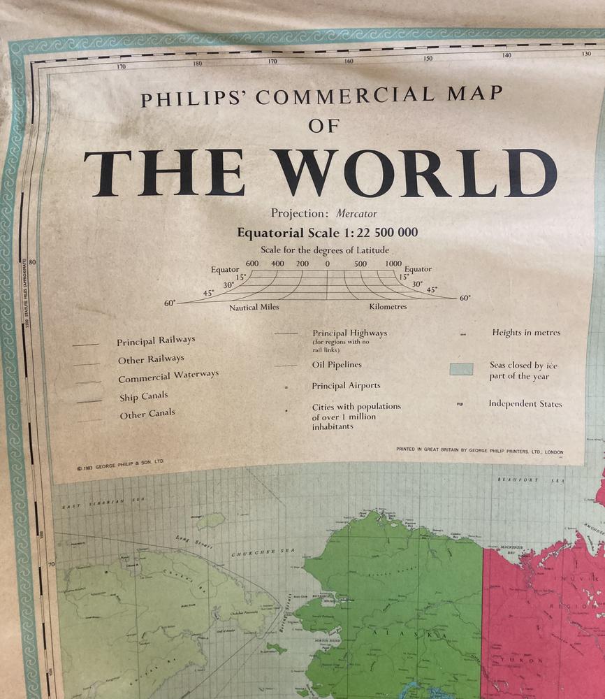 MAPPA POLITICA PHILIPS' THE WORLD stampa tipografica su carta applicata su...