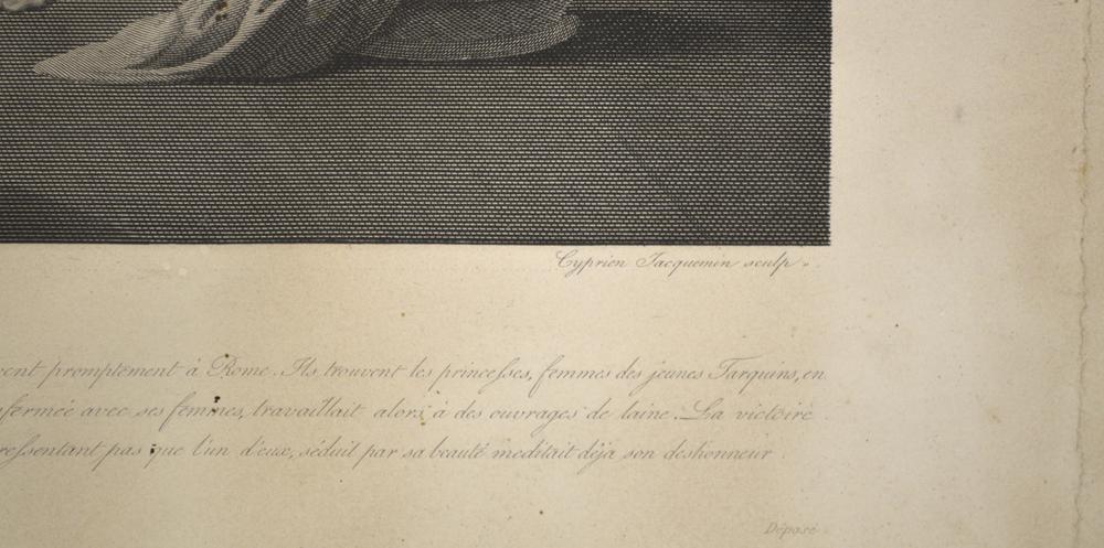 Scuola del XIX secolo LUCREZIA RICEVE LA VISITA DEI TARQUINI litografia, cm...
