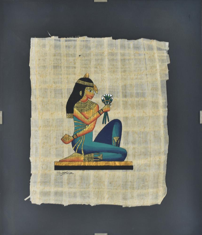 Anonimo STAMPA EGIZIANA SU PAPIRO raffigurante donna in veste cerimoniale cm...