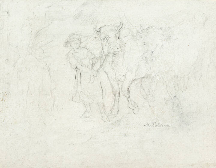 Lot 17 | MARCO CALDERINI<BR>Torino 1850 - 1941<BR>"Contadina con mucche"