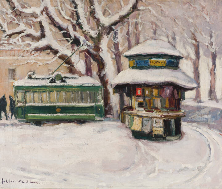 FELICE VELLAN<BR>Torino 1889 - 1976<BR>"Periferia (Torino, Madonna del Pilone)" 1952