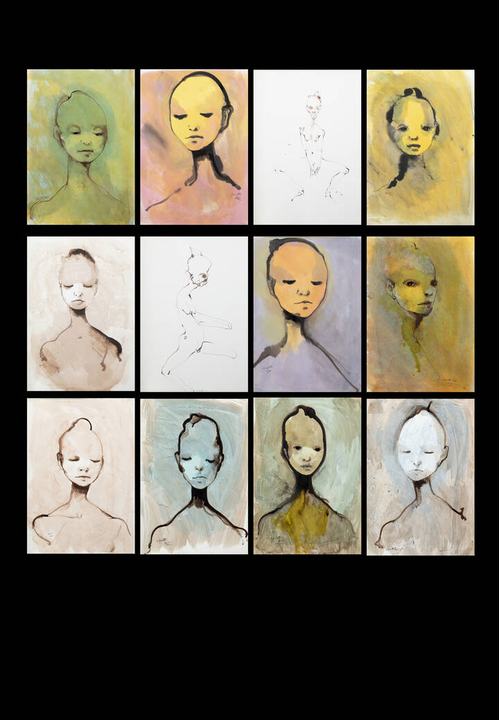 ENRICO COLOMBOTTO ROSSO<BR>Torino 1925 - 2013 Casale Monferrato (AL)<BR>Lotto di 12 tecniche miste su carta