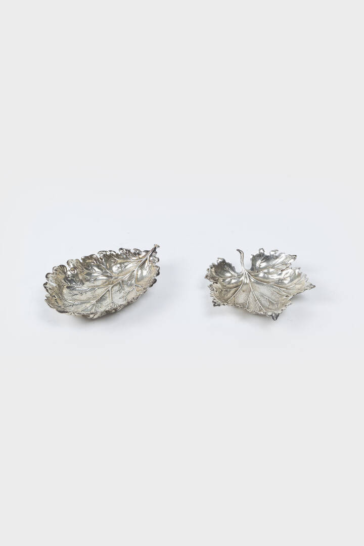 Lotto di due ciotole a forma di foglia di vite e di acero in argento 925/1000, firmate "Gianmario Buccellati"