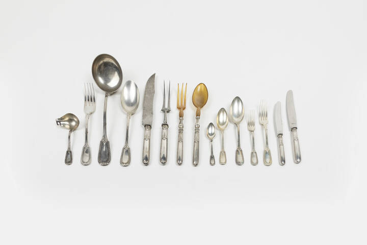-12 forchette grandi decorate con sfere. Peso gr 994,7