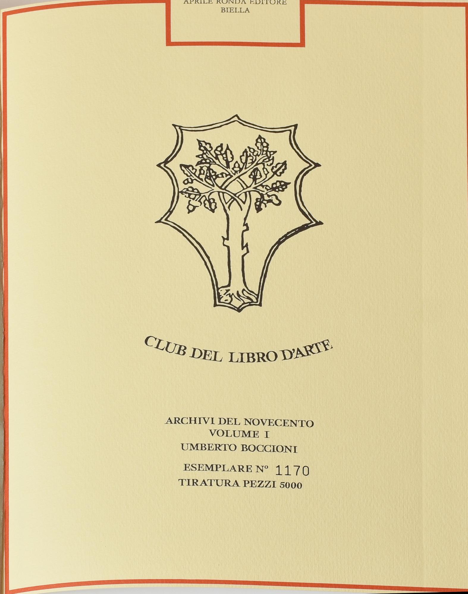 UMBERTO BOCCIONI CLUB DEL LIBRO D'ARTE. ARCHIVI DEL NOVECENTO volume I, cm...