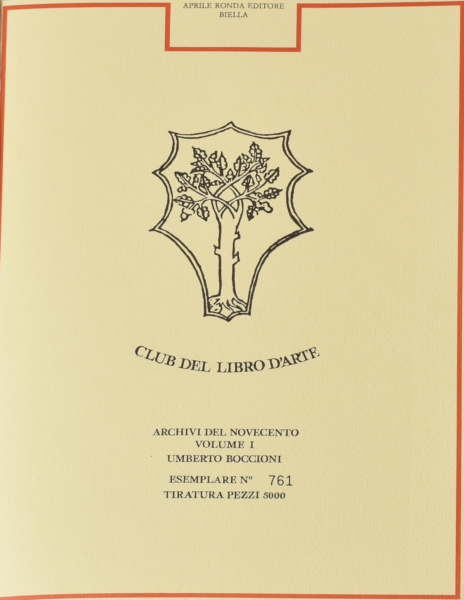 UMBERTO BOCCIONI CLUB DEL LIBRO D'ARTE. ARCHIVI DEL NOVECENTO volume I, cm...