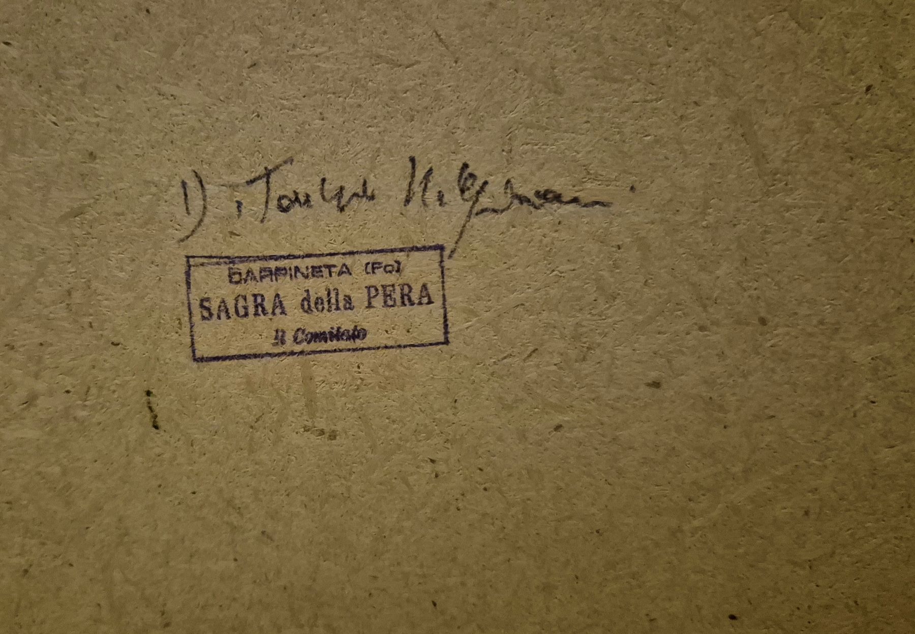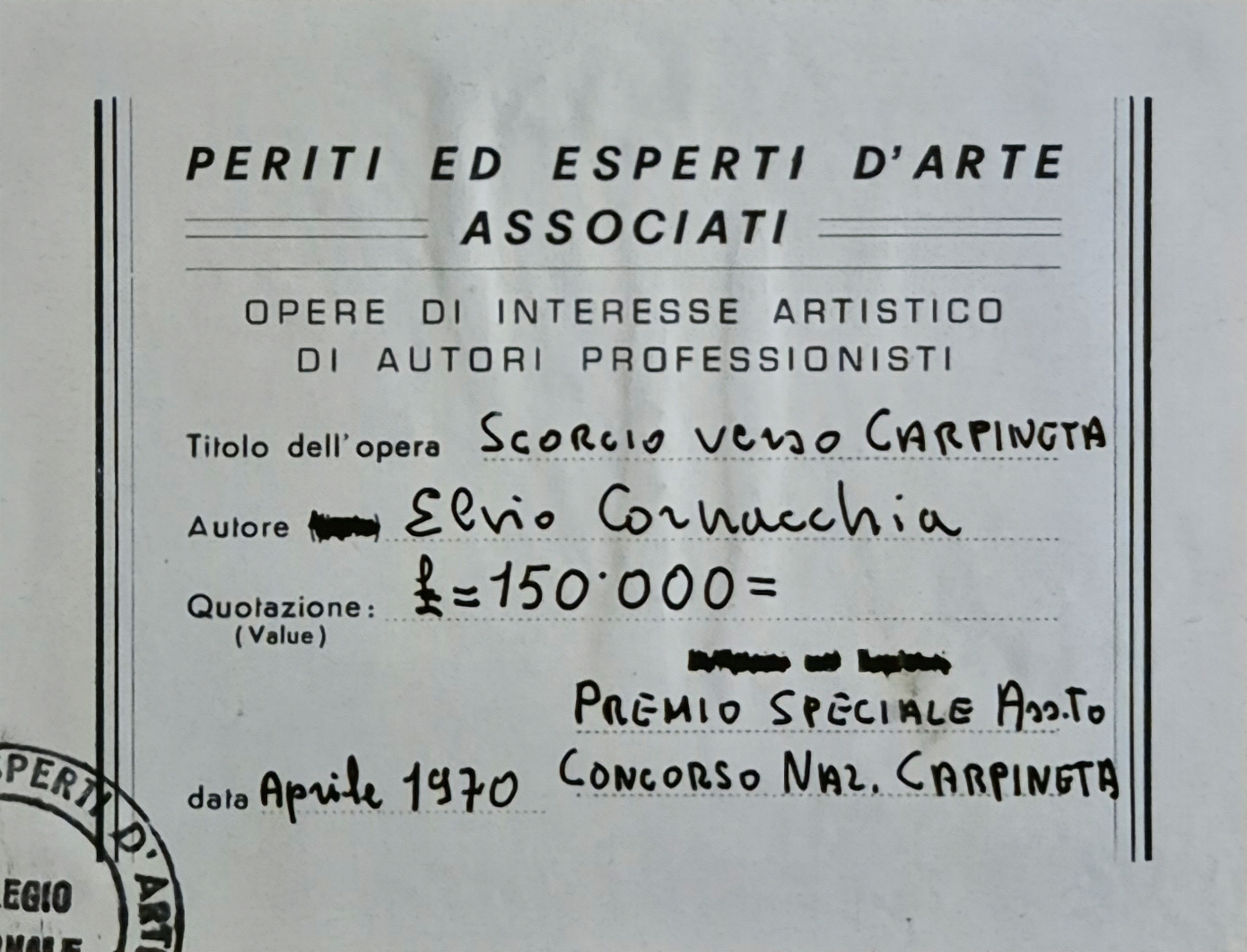 Olio su tavola. Firmato in basso a destra E. Cornacchia. Al verso cartiglio e timbro Collegio Nazionale dei Periti ed esperti d'arte associati, aprile 1970 e altro timbro.