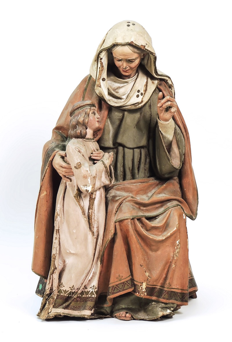 GRUPPO D'EPOCA IN STUCCO E CARTAPESTA - OLD STUCCO AND PAPIER-MÂCHÉ FIGURAL GROUP raffigurante Madonna con fanciullo, difetti e mancanze h cm 42