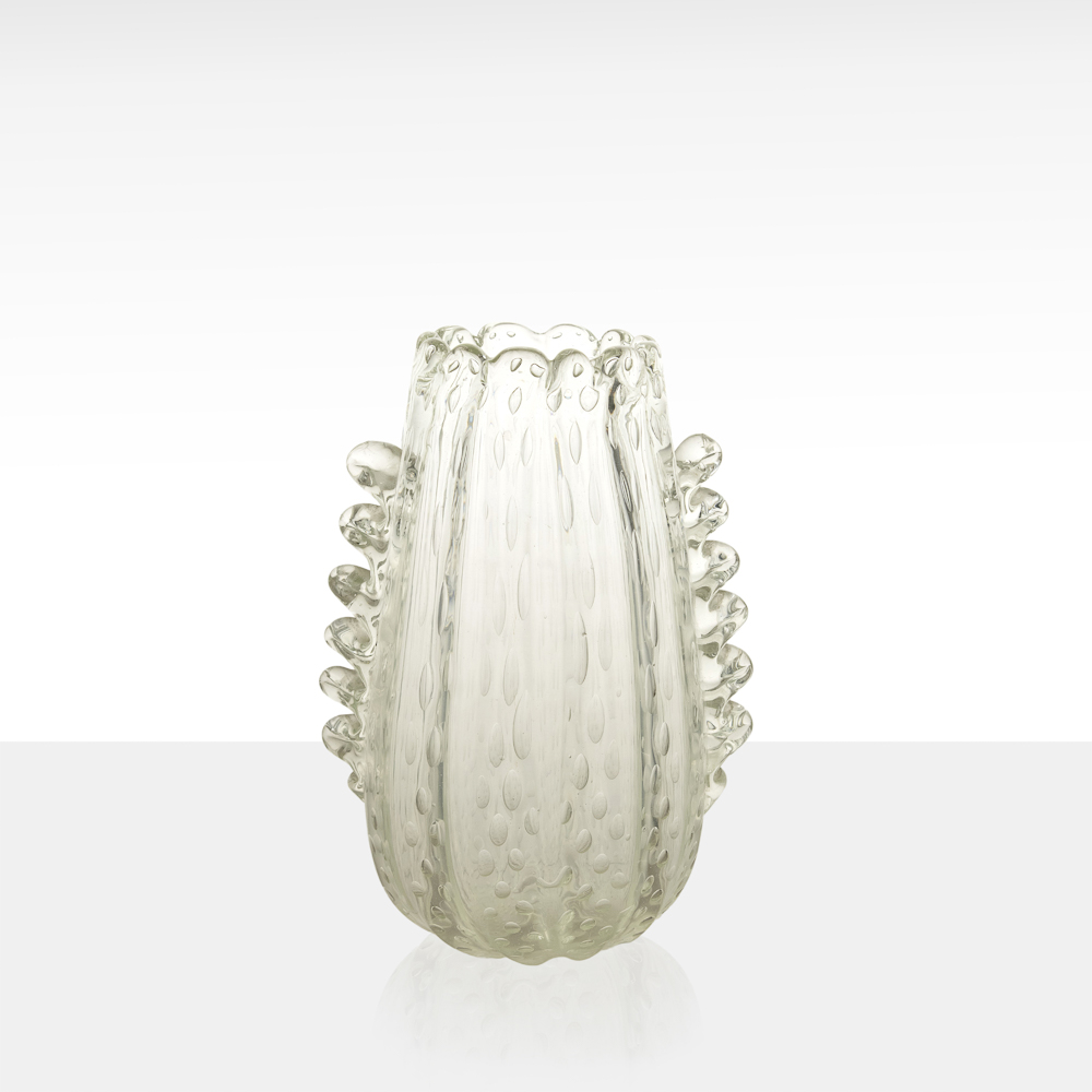 vaso in vetro trasparente con inclusione di bolle d'aria, anse applicate