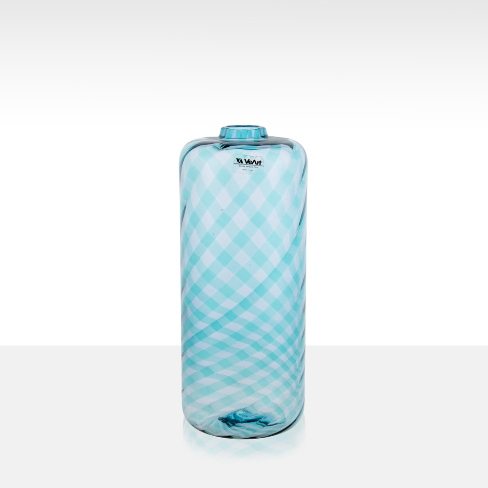 vaso a canne ritorte color zaffiro e acquamare, firma incisa ed etichetta della produzione