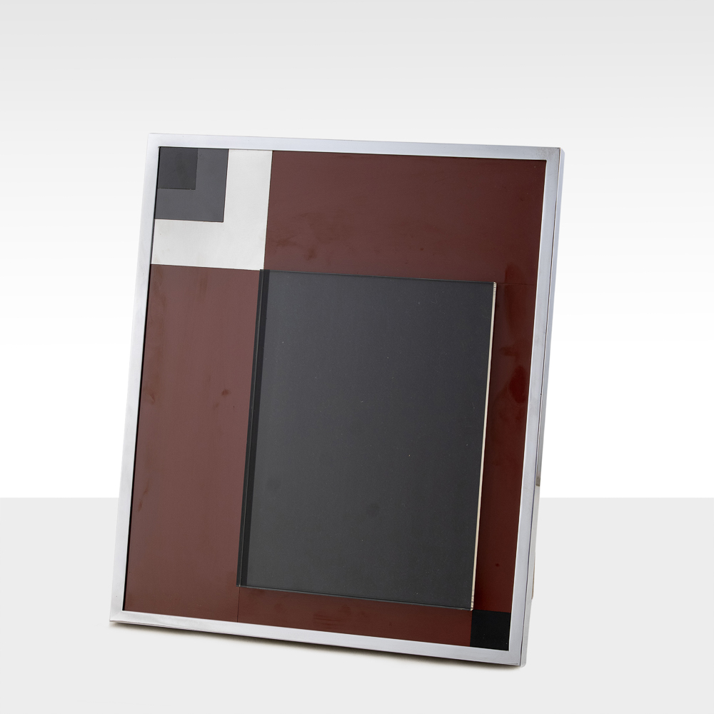 cornice portafoto in acciaio, acciaio verniciato e plexiglass, firmata