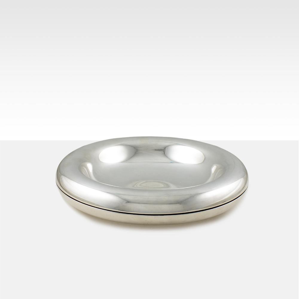 bowl in metallo argentato, firmata, marchio della produzione, lievi usure
