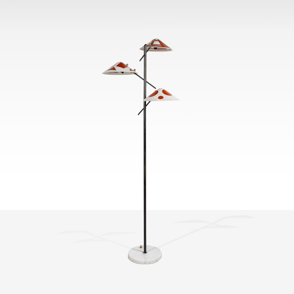 lampada da terra in metallo verniciato, perspex, ottone e base in marmo, lievi usure