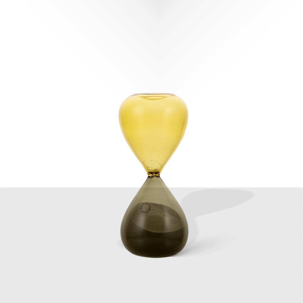 clessidra in vetro soffiato, firma e data a punta, etichetta della produzione