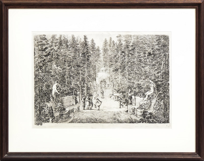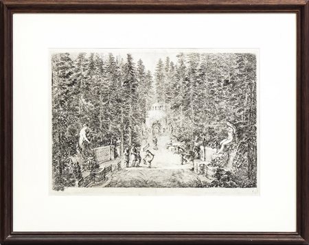 STEFANO DELLA BELLA (1610-1664) Veduta della Villa di Pratolino - Pratolino's Villa View acquaforte - etching, in cornice cm 25x36,5 Esemplare appartenente alla serie delle Vedute della Villa Medicea di Pratolino, la serie fu stampata per la prima volta nel 1742