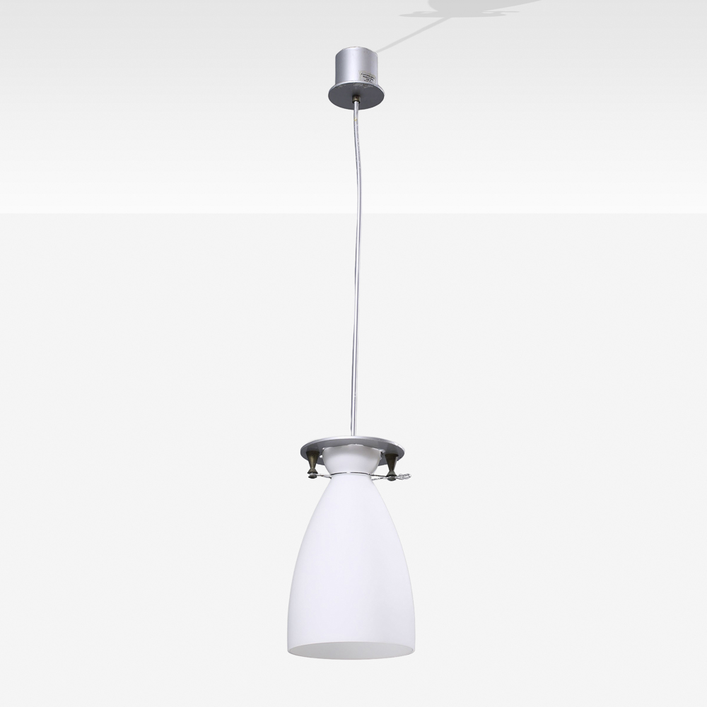 lampada a sospensione mod. Franceschina in metallo verniciato, alluminio, ottone e diffusore in vetro opalino satinato, etichetta della produzione, usure e difetti.