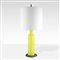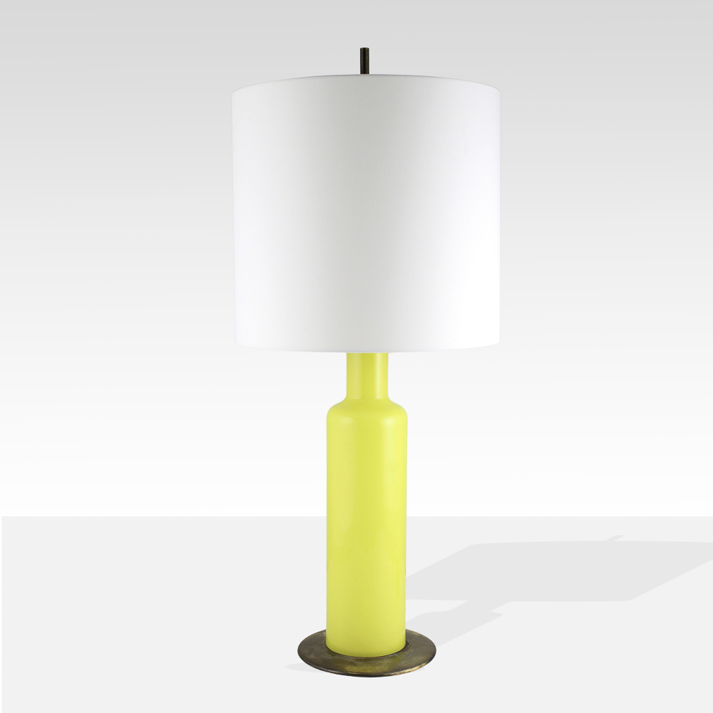 lampada da tavolo in ottone e vetro opalino giallo, completa di paralume